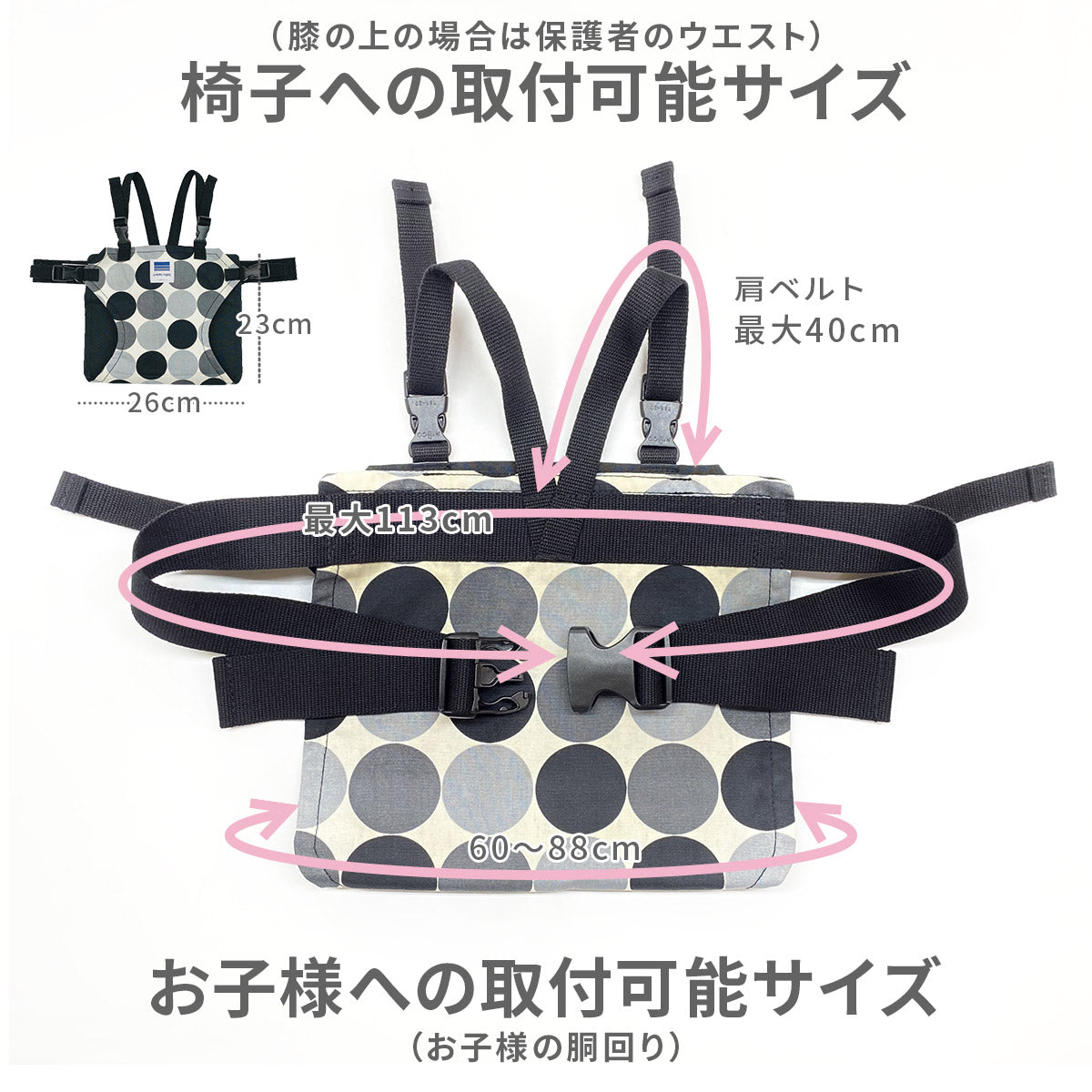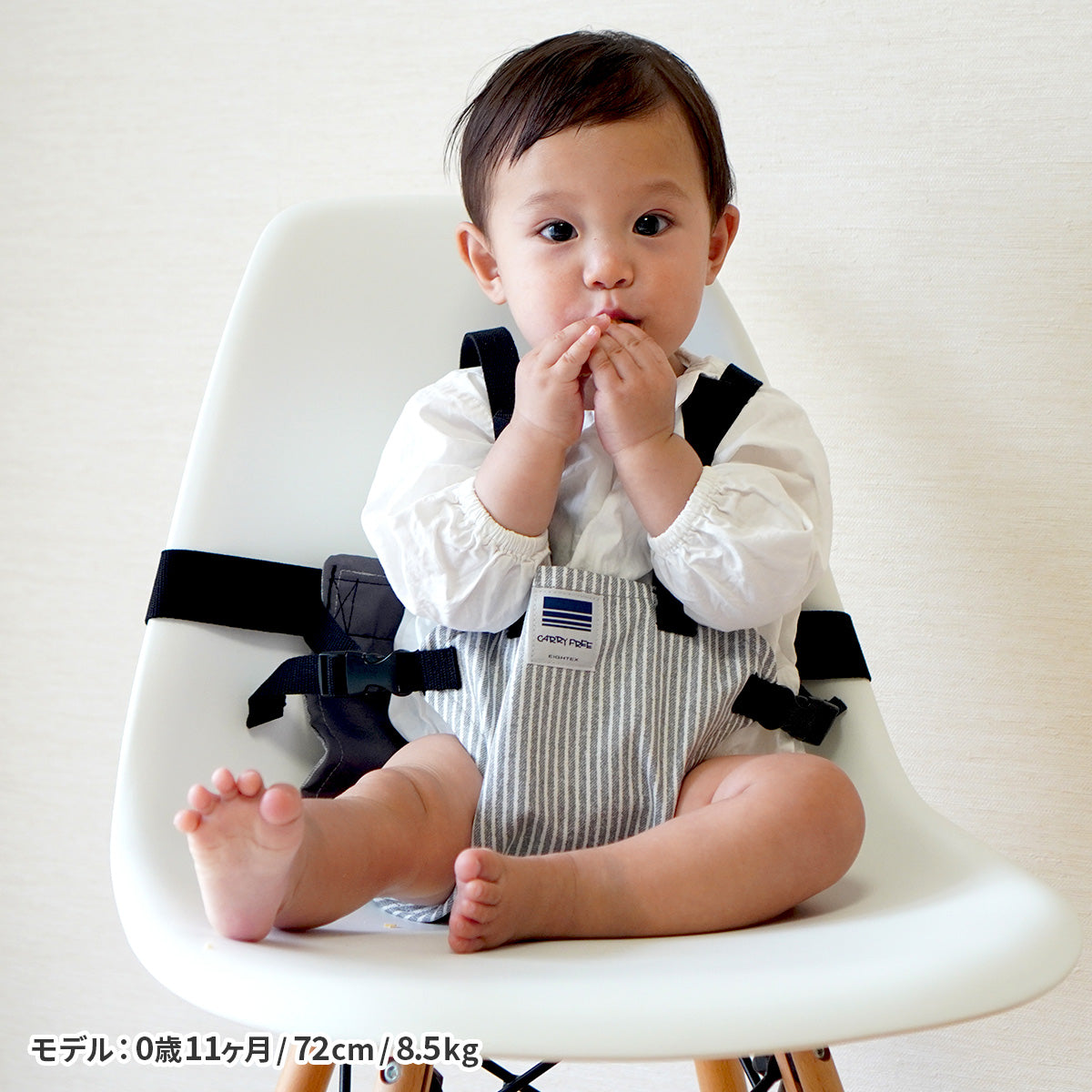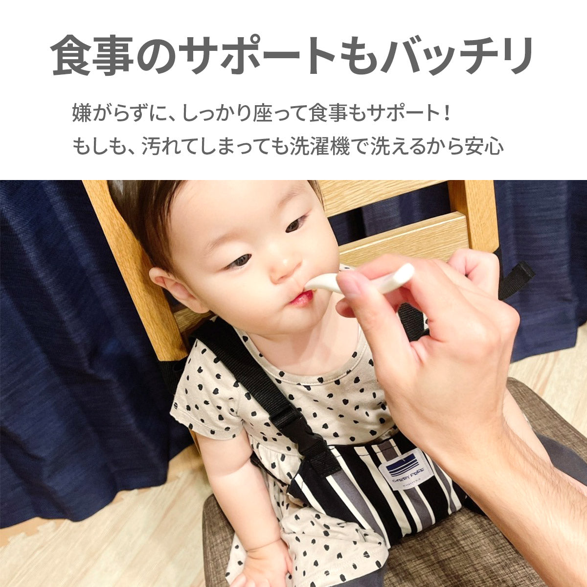 椅子に装着するだけでなく、大人のひざの上でも使用できるので、両手が空いて食事のサポートやお子様も心地よく座っていられます。