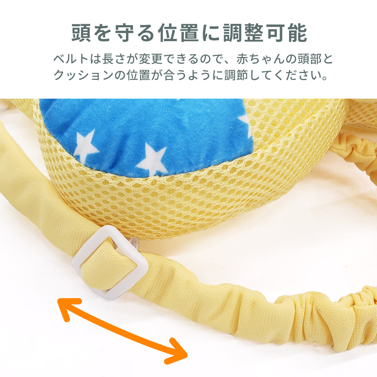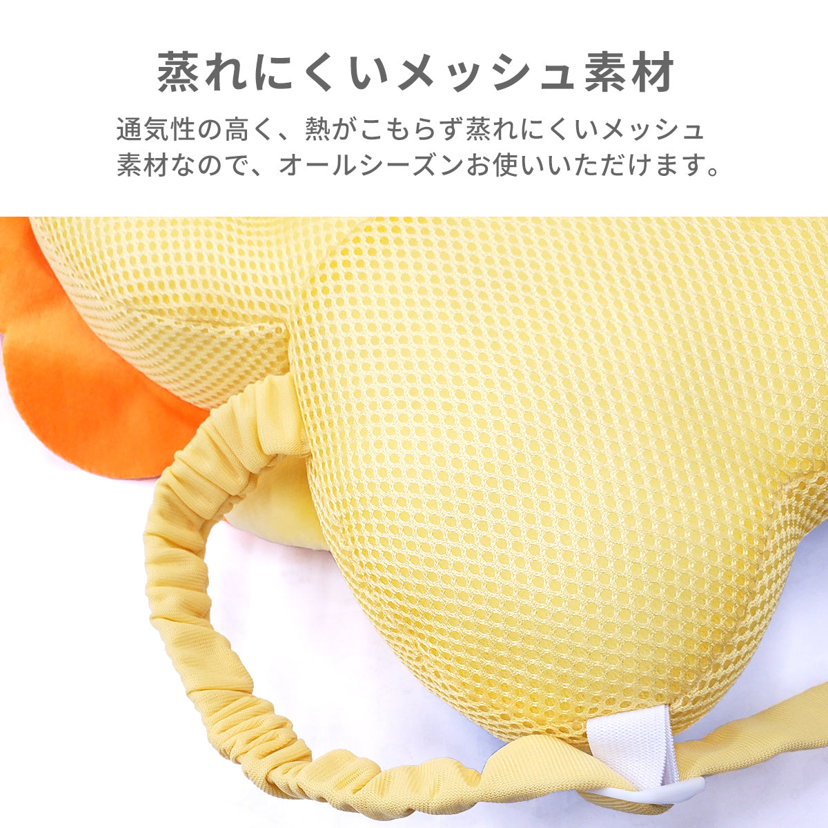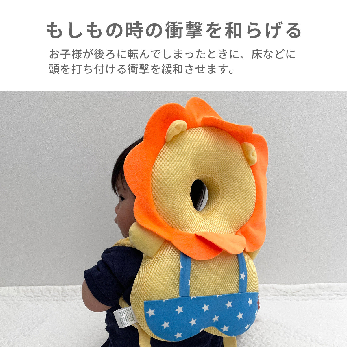 ※本品はお子さまの後頭部をぶつけた時の衝撃を軽減しますが、全ての事故やケガから身の安全を守るものではありません。