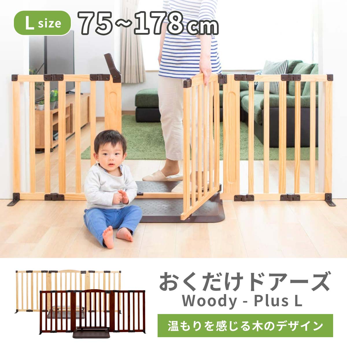 ベビーゲート おくだけドアーズwoody-Plus L