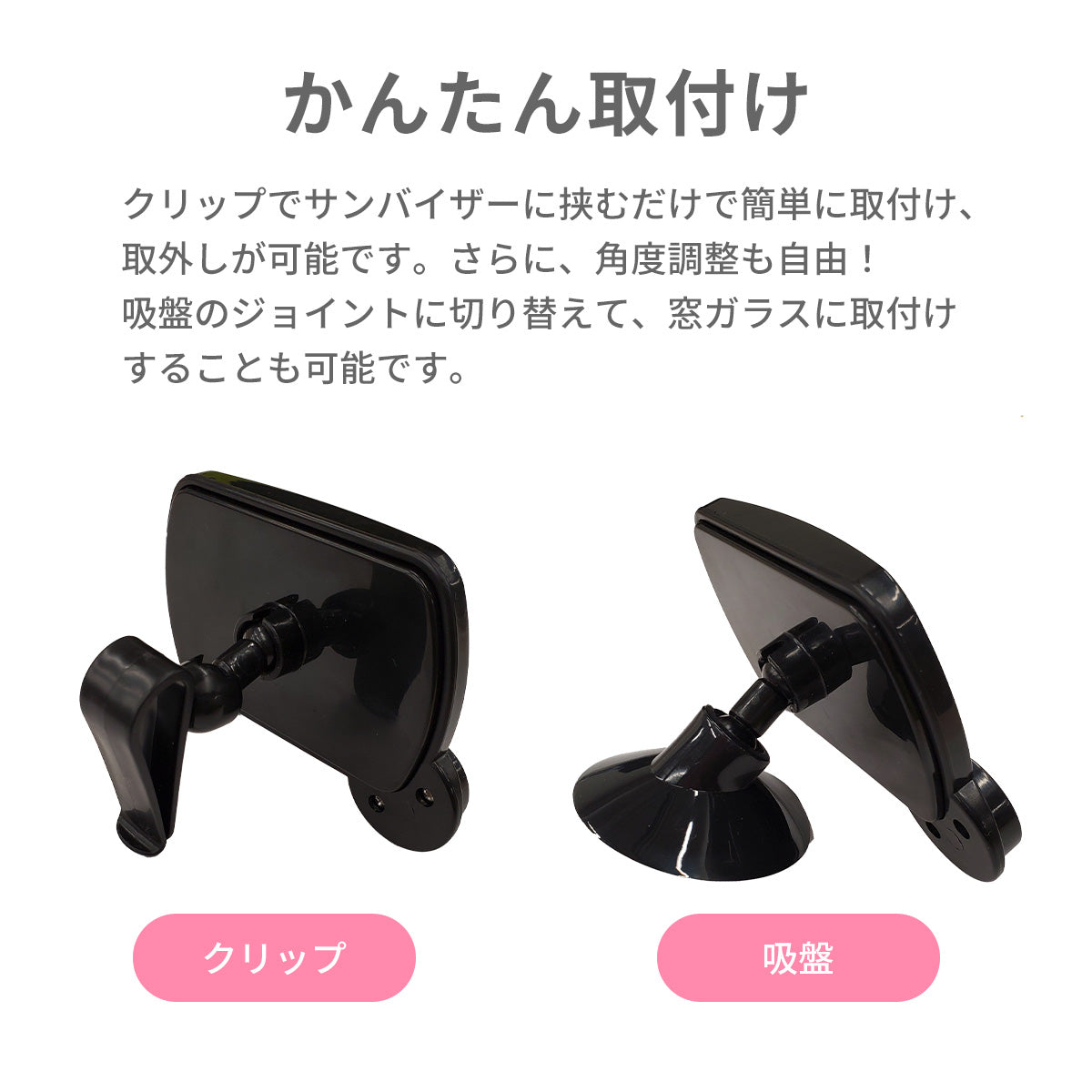 付属のクリップでサンバイザーに付けられるので、簡単に取り外しが可能!