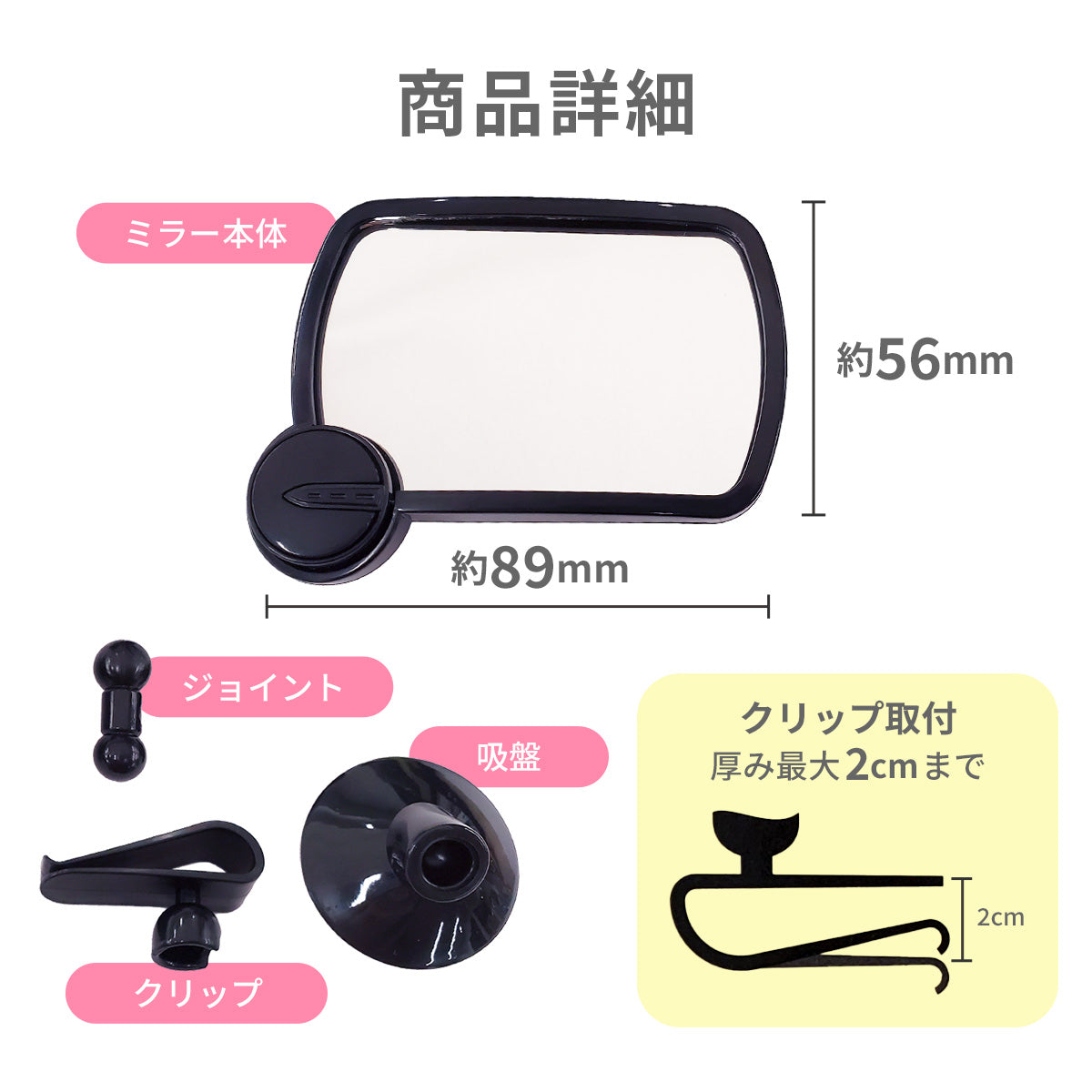 セット内容 ミラー本体1個、ジョイント1個、吸盤1個、クリップ1個