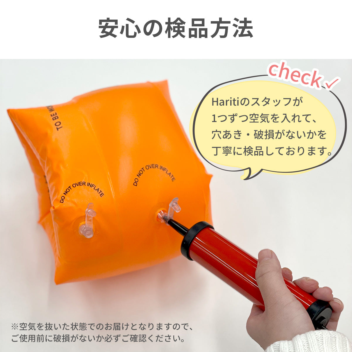 ・必ず使用前に一度空気を入れ、空気漏れなどが無いかご確認下さい。