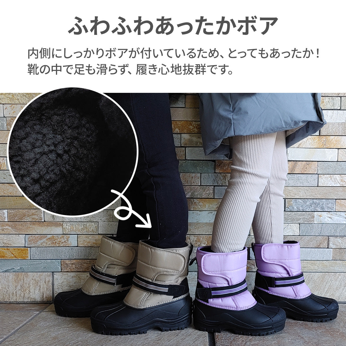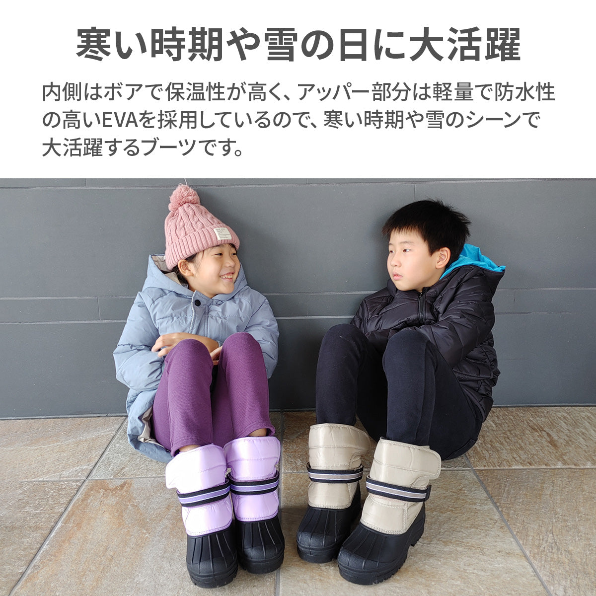内側はボアで暖かく、アッパー部分はEVAで防水性がバッチリ!!