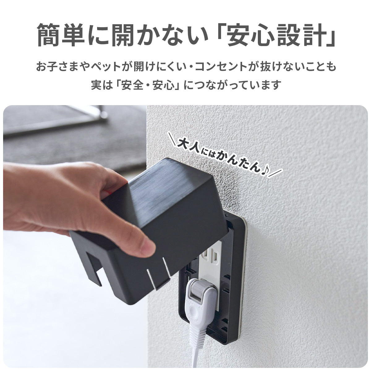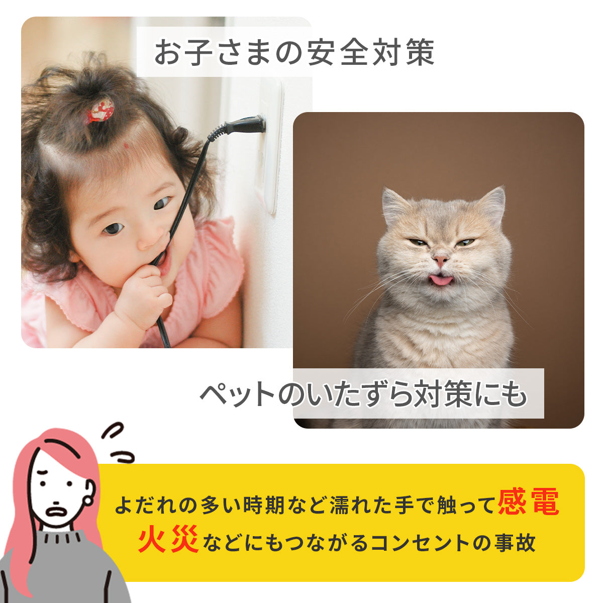 コンセントを差し込んだままカバーができるのに、お子様やペットは開けにくい安全設計!