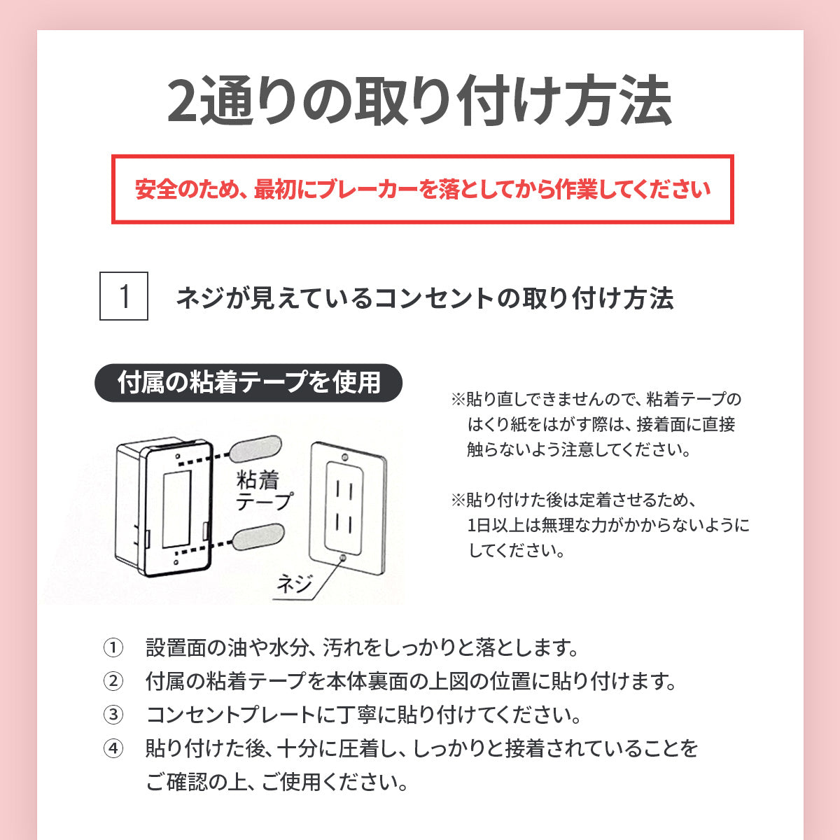 内容量 | コンセントガード1個 付属品:ネジx2、粘着テープx2 |