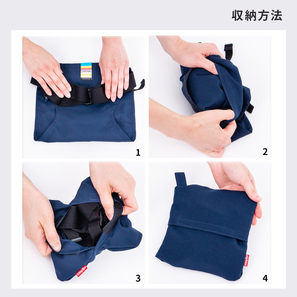 ポケッタブルでコンパクトに持ち運びもでき、 ストラップ付きなのでベビーカーにもぶら下げて持ち運びができます!