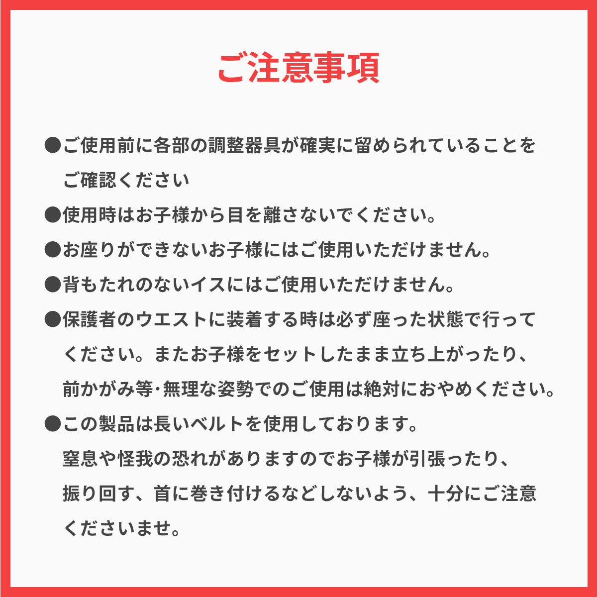 ●保護者のウエストに装着する時は必ず座った状態で行ってください。