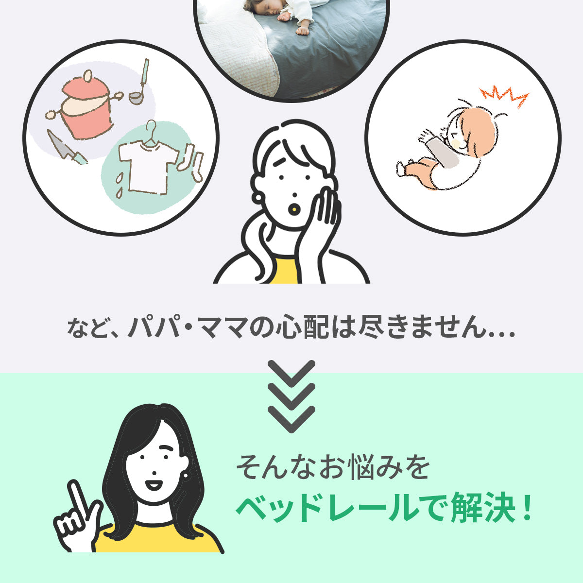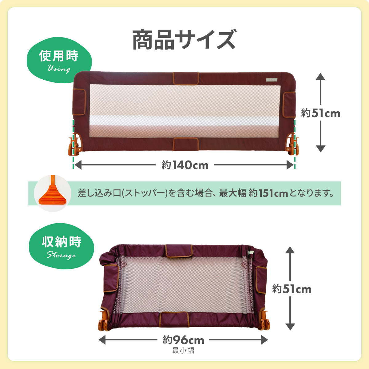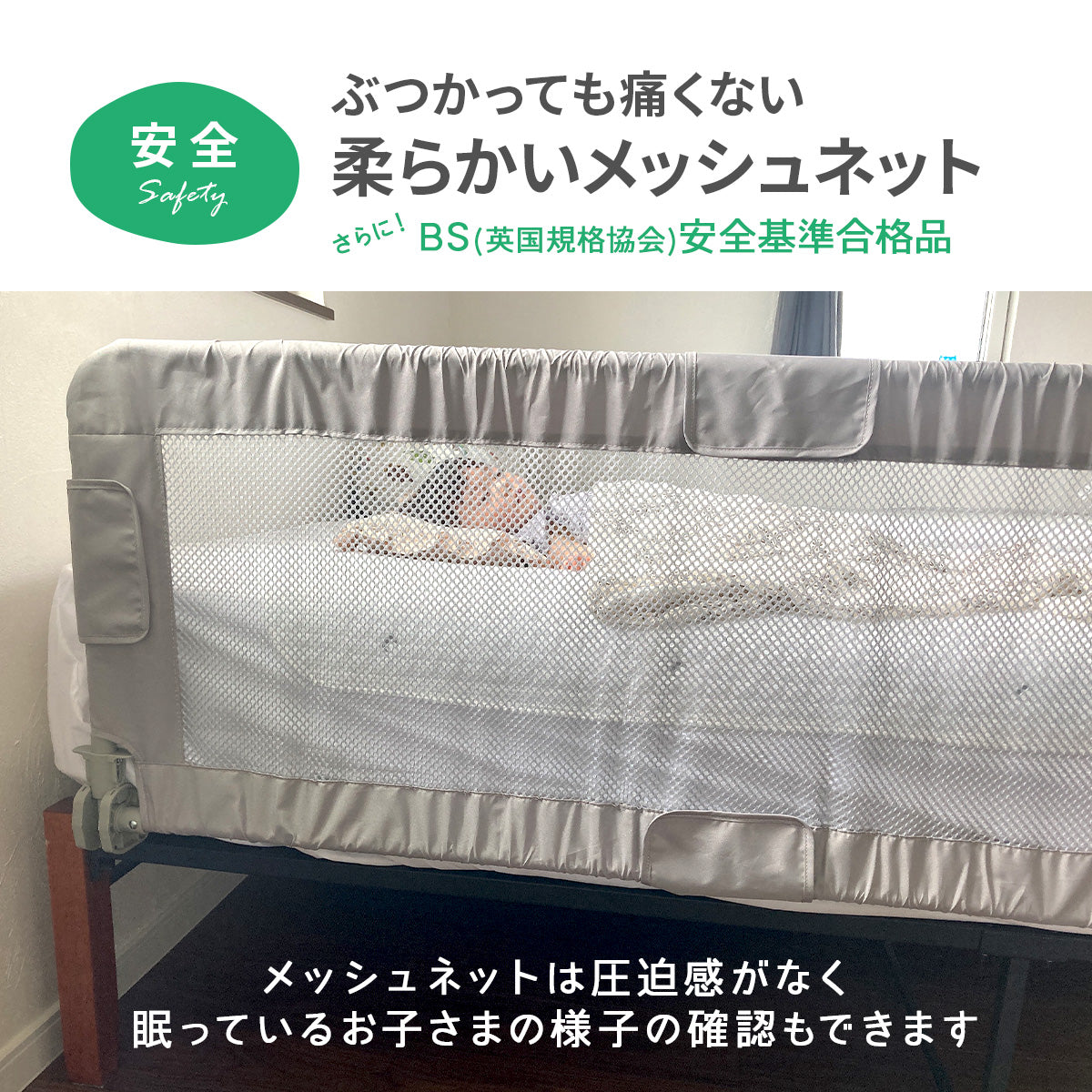 幅が約151cmもあるワイドサイズで、お子様を転落から守ってくれます。