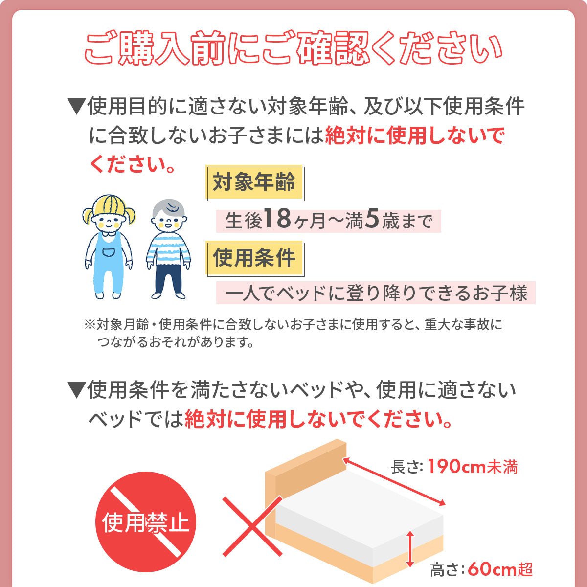 ●床からマットレス上面までの高さが60cmを超えるベッドには、使用しないでください。
