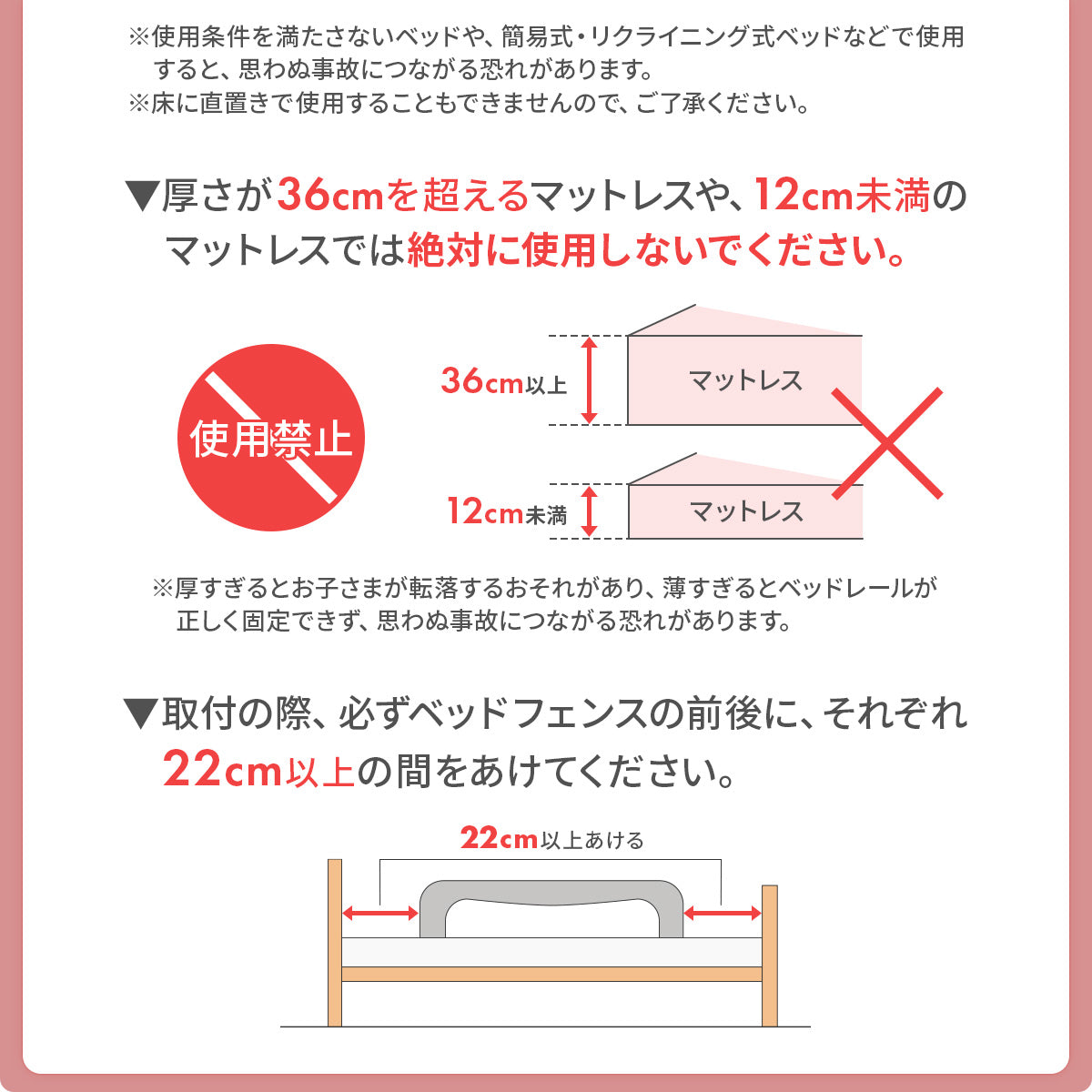 ●マットレスは、12cm~最大36cmまでの厚みのものをご使用ください。