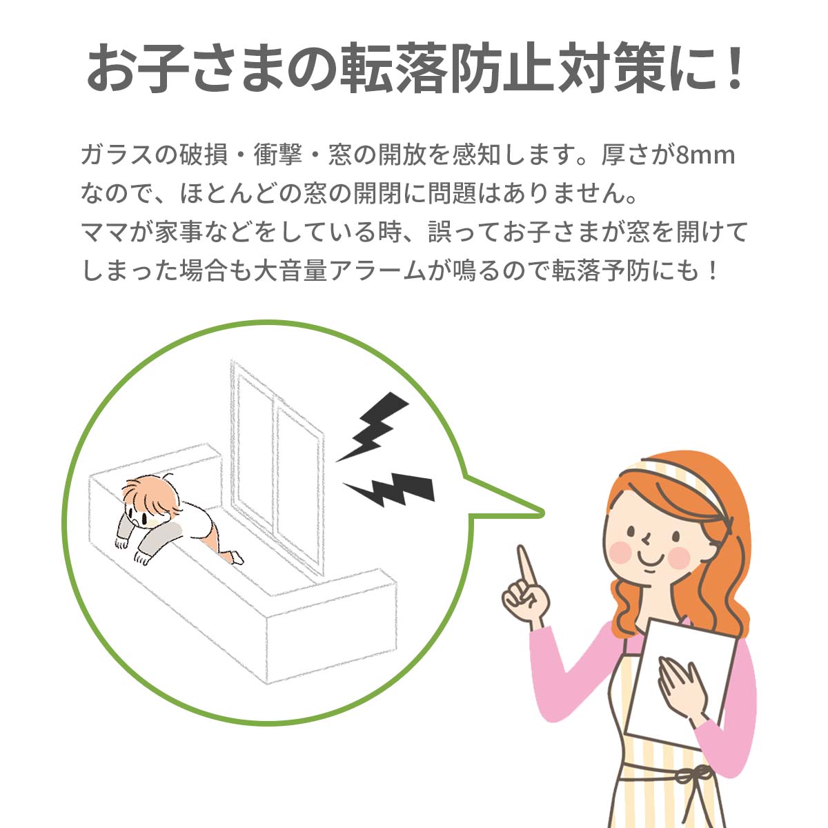 誤ってお子様が窓を開けてしまった場合も大音量アラームが鳴るので転落防止対策にも!