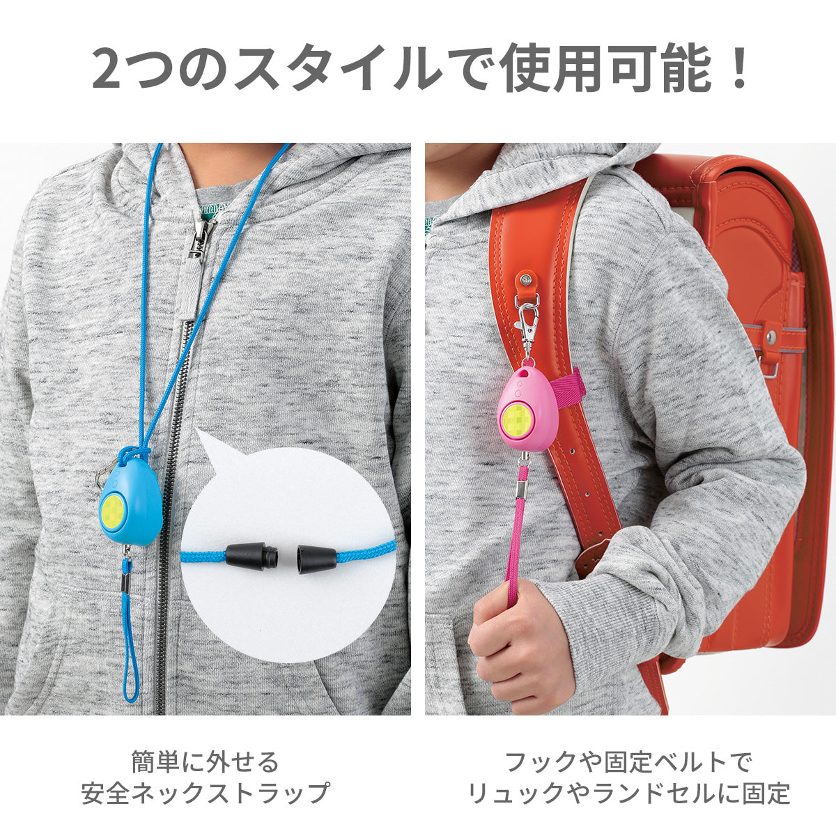 ストラップを引っ張ると大音量の警報音だけでなく同時にライトも点滅するので、周りに異常をしっかりと知らせてくれます!