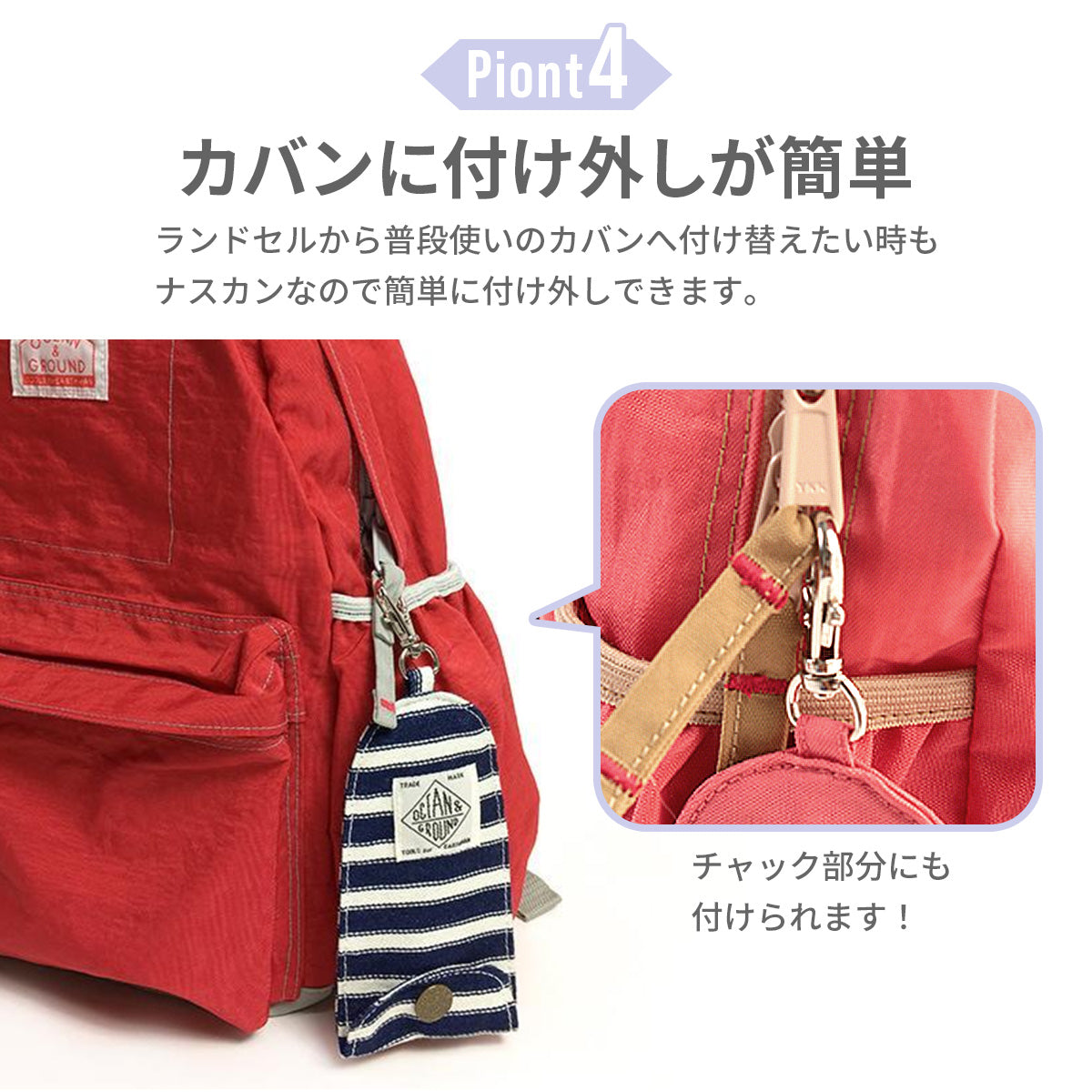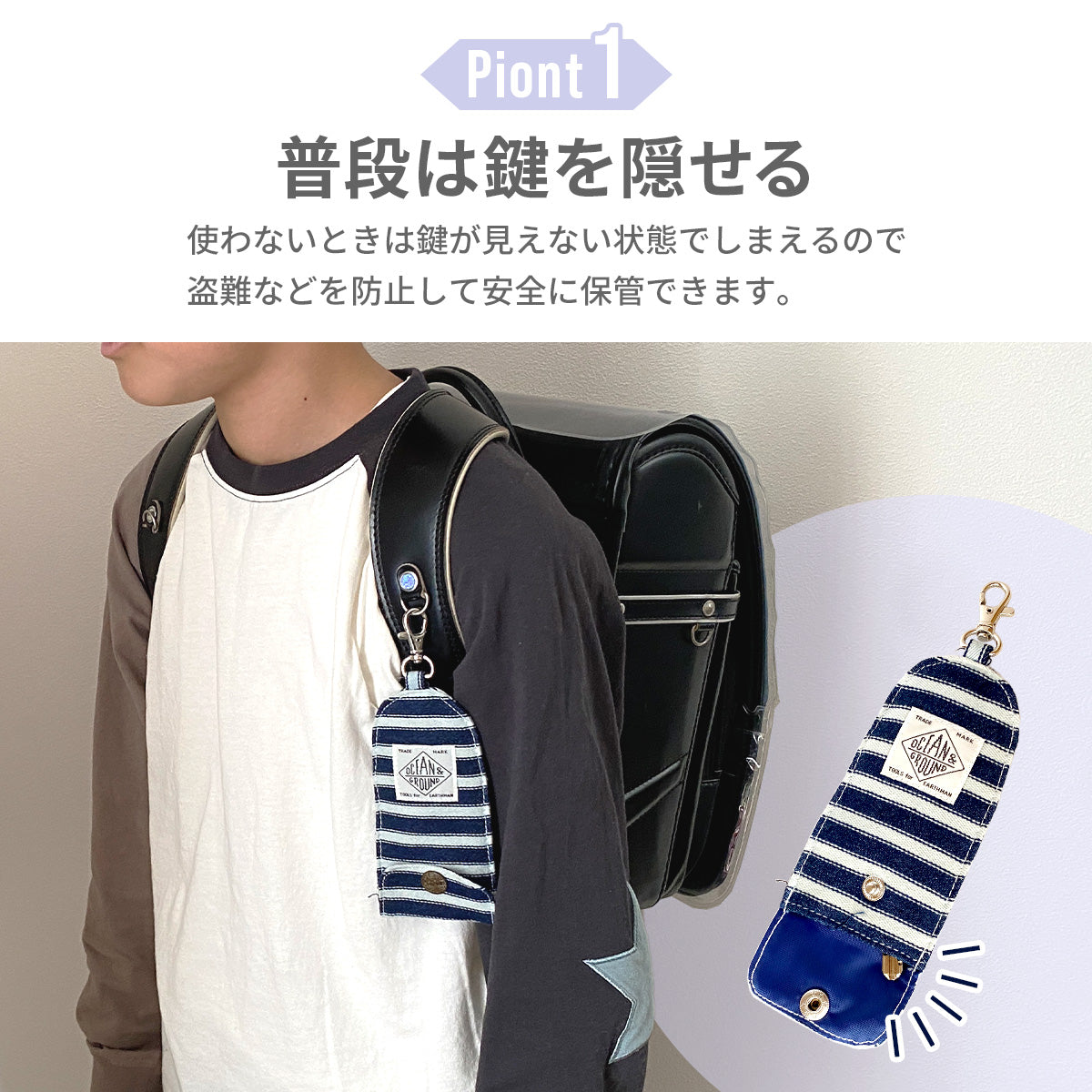 ランドセルやバッグに付けたまま使える、便利なキーケース!