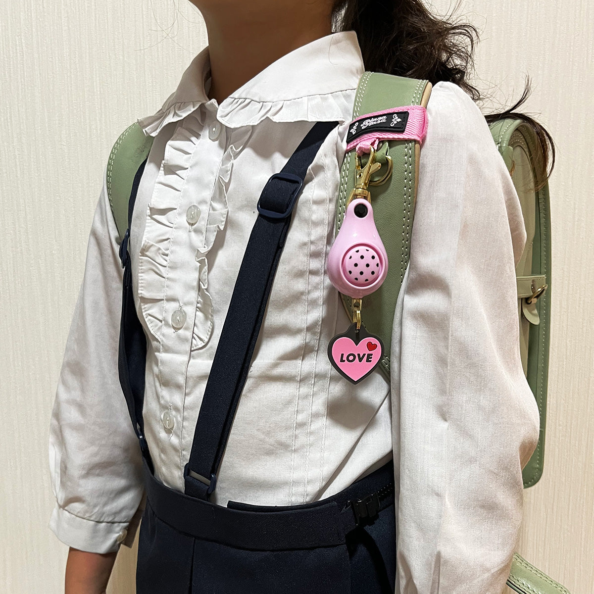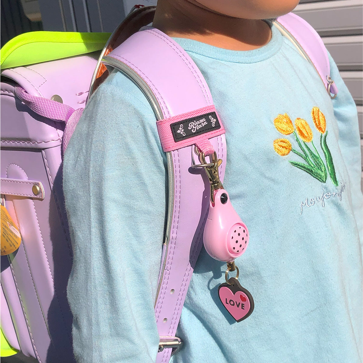 固定ベルトや金属フックで、ランドセルやカバンに取り付けられます!