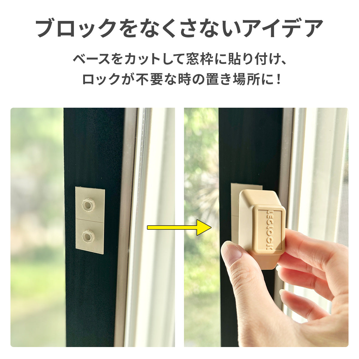 ・ロックブロックを幼児が誤って口に入れないように本品の設置場所や取り外し後のブロックの置き場には十分に注意願います(サッシ天側設置をお勧めしております)