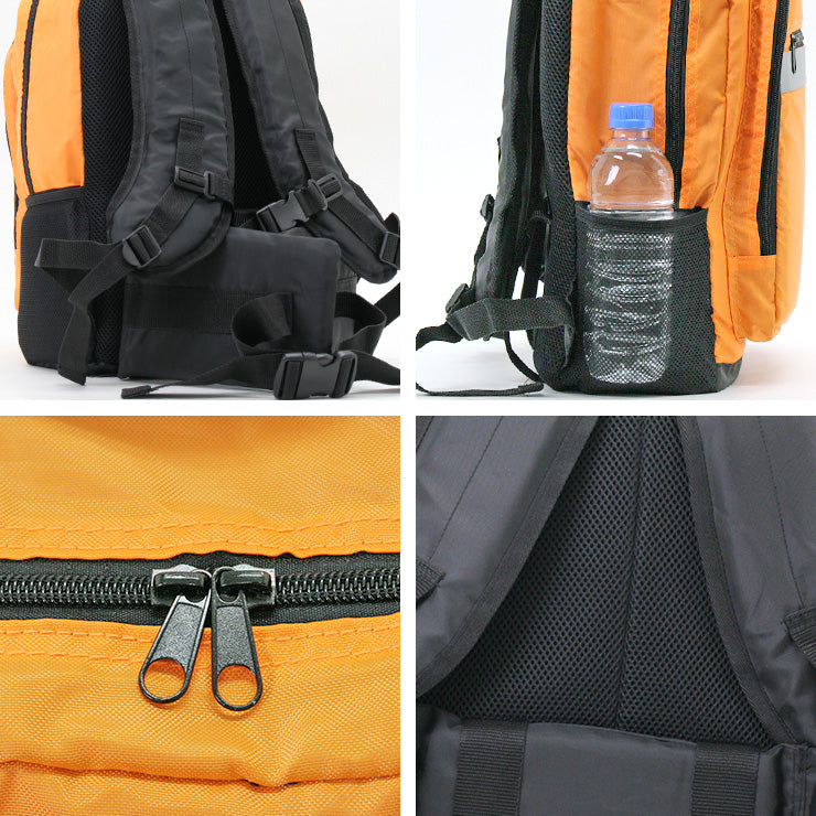 アウトドア・レジャー用・防災用リュックとしても。本体背面下部のファスナーを開けると、防災頭巾も装備されていて、緊急時により安全を確保することができます。