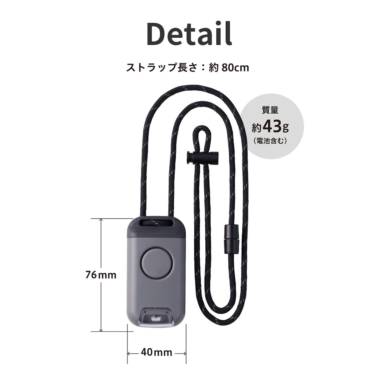外形寸法 | 約40(W)×20(D)×76(H)mm ※ストラップ長さ:約80cm |