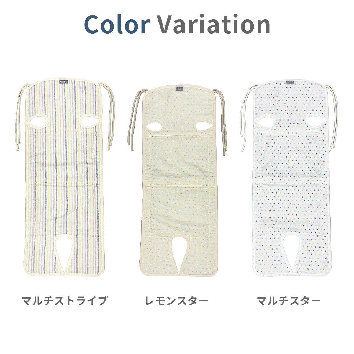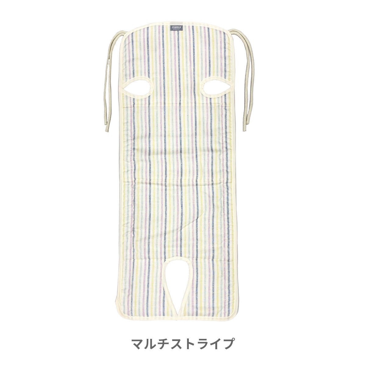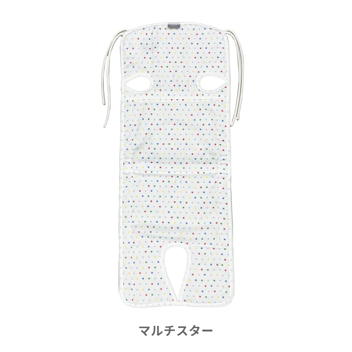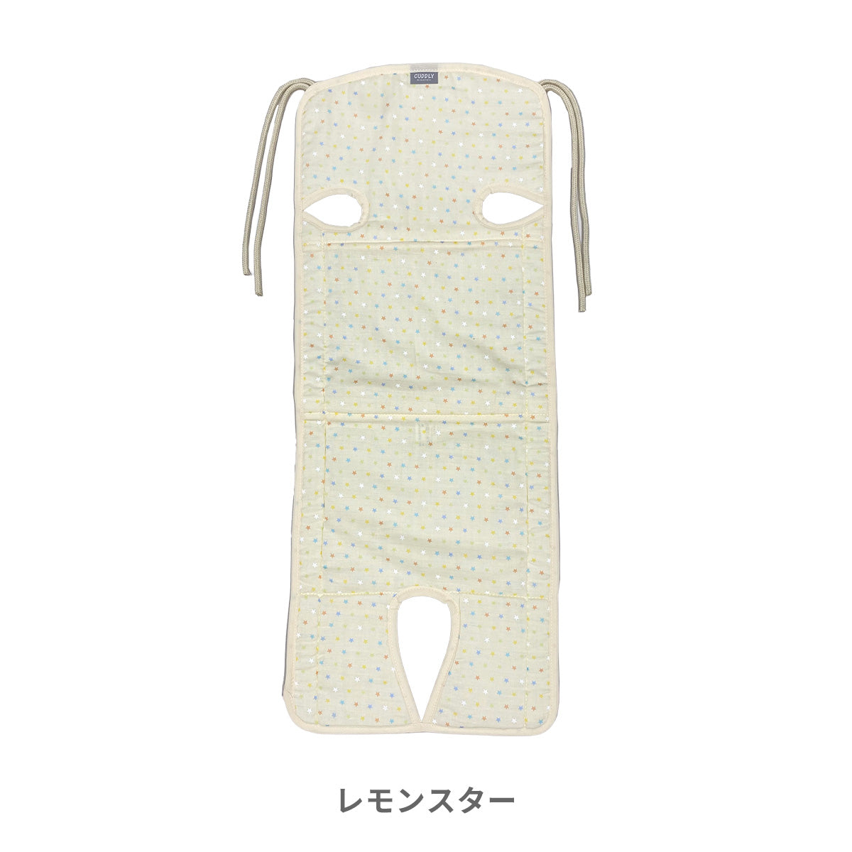 ダブルガーゼで肌触りがサラサラ。天然の吸水速乾作用で汗をかいてもすぐに乾きべたつきません。裏地のハニカム素材も通気性バツグンです。フリーなベルトホールがあるので3点式・5点式のベビーカーに対応しています。取り付けはストラップを結ぶだけなので、様々なベビーカーに簡単に取り付けられます。
