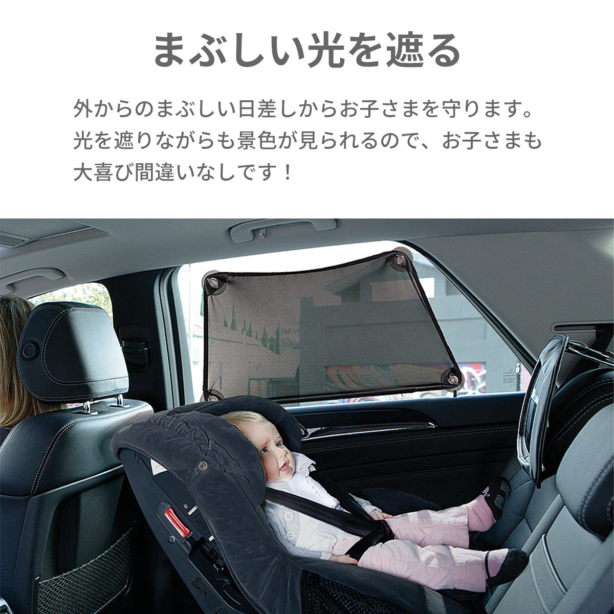 カーシェードが、外からのまぶしい光を遮ってくれます!