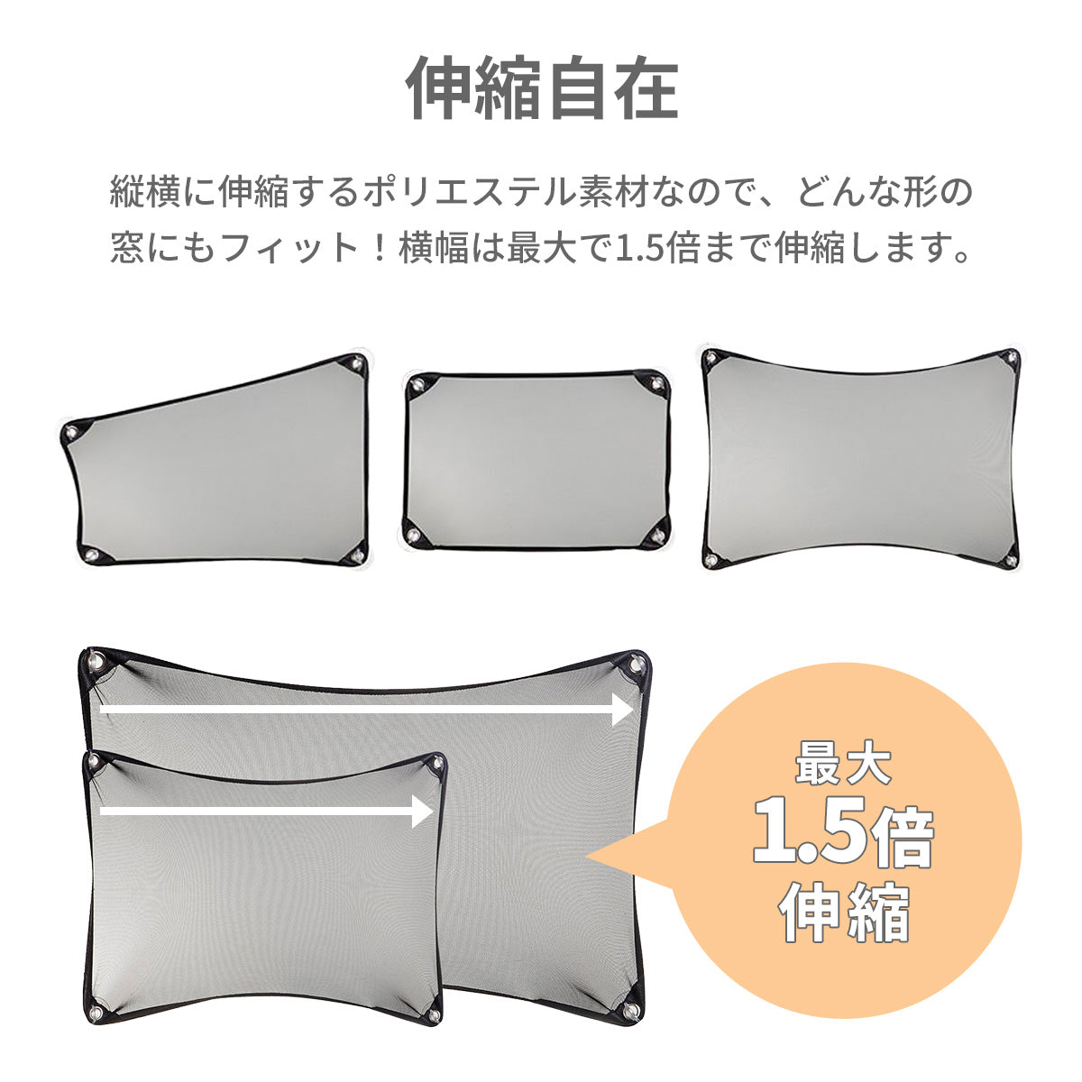 このカーシェードは縦横に伸縮するので、どんな形の窓にもフィットしてくれる優れもの☆