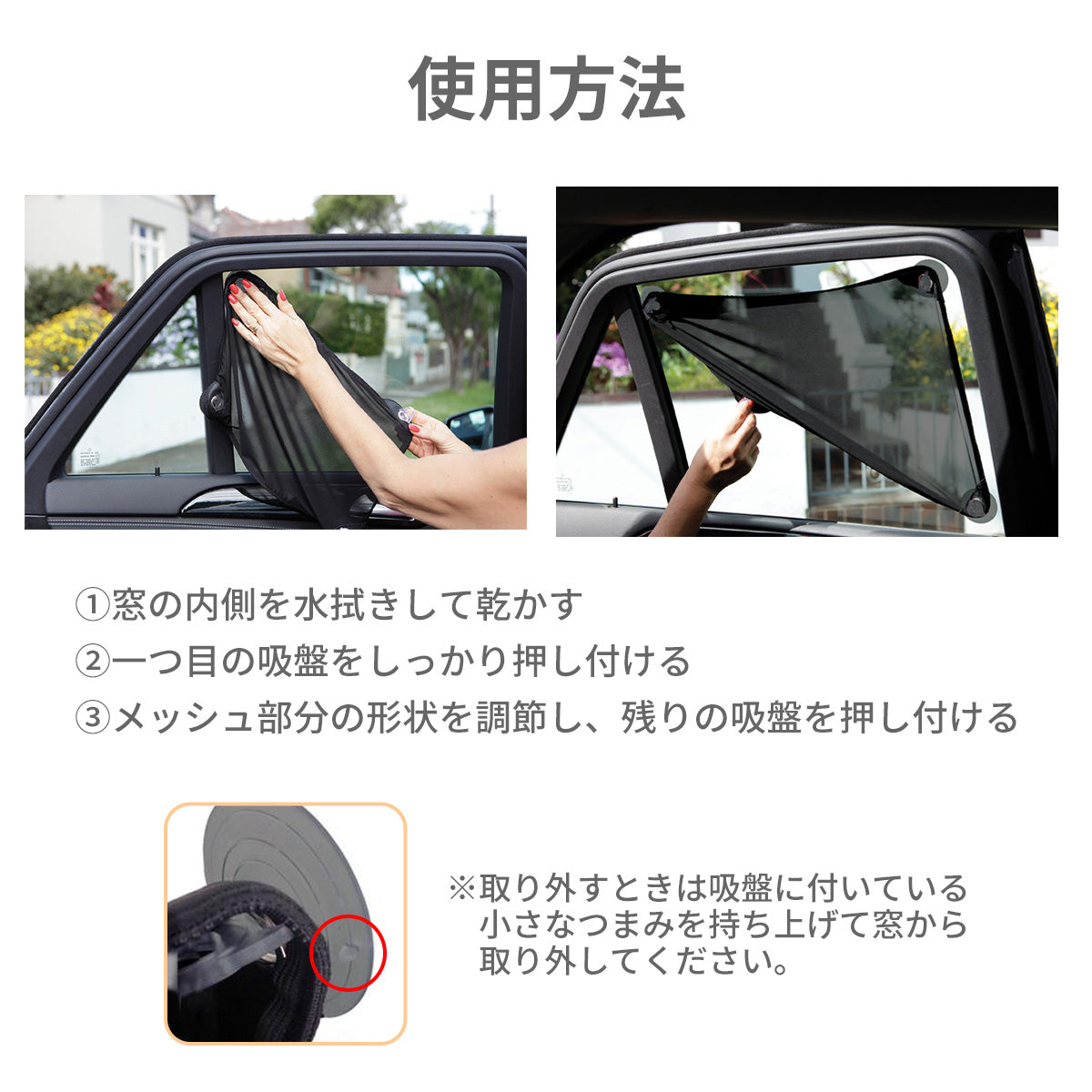 ・取り付けている時は窓を開けないようにしてください。