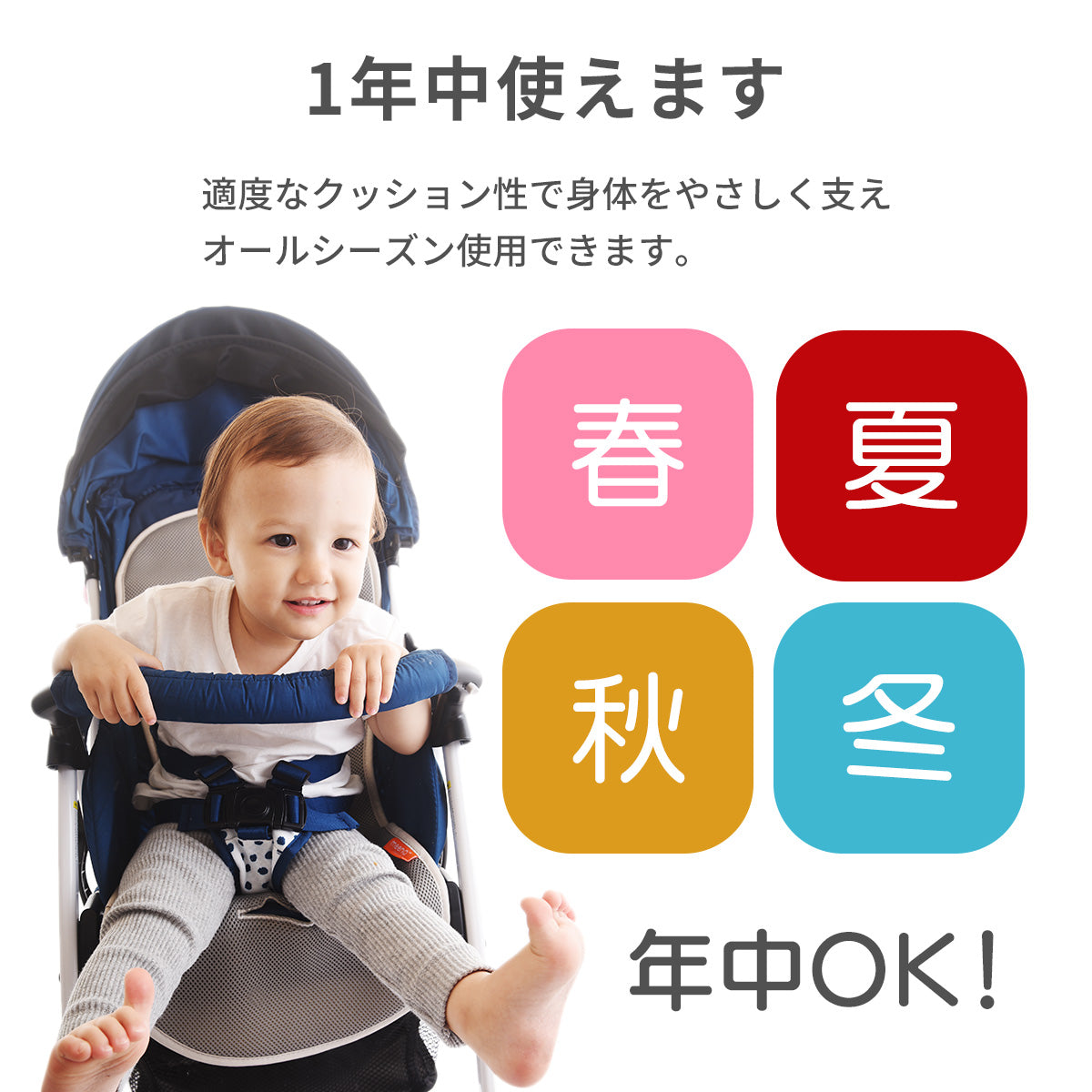 適度なクッション性で身体をやさしく支え、オールシーズン使用できます!