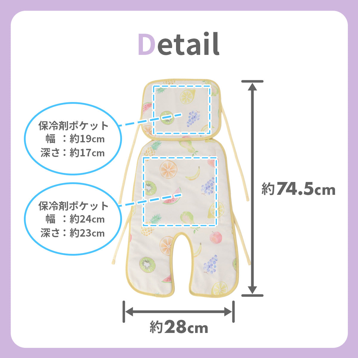 サイズ | F 本体:縦74.5cm x 横28cm 保冷剤ポケット(上):幅約19cm、深さ約17cm 保冷剤ポケット(下):幅約24cm、深さ約23cm |