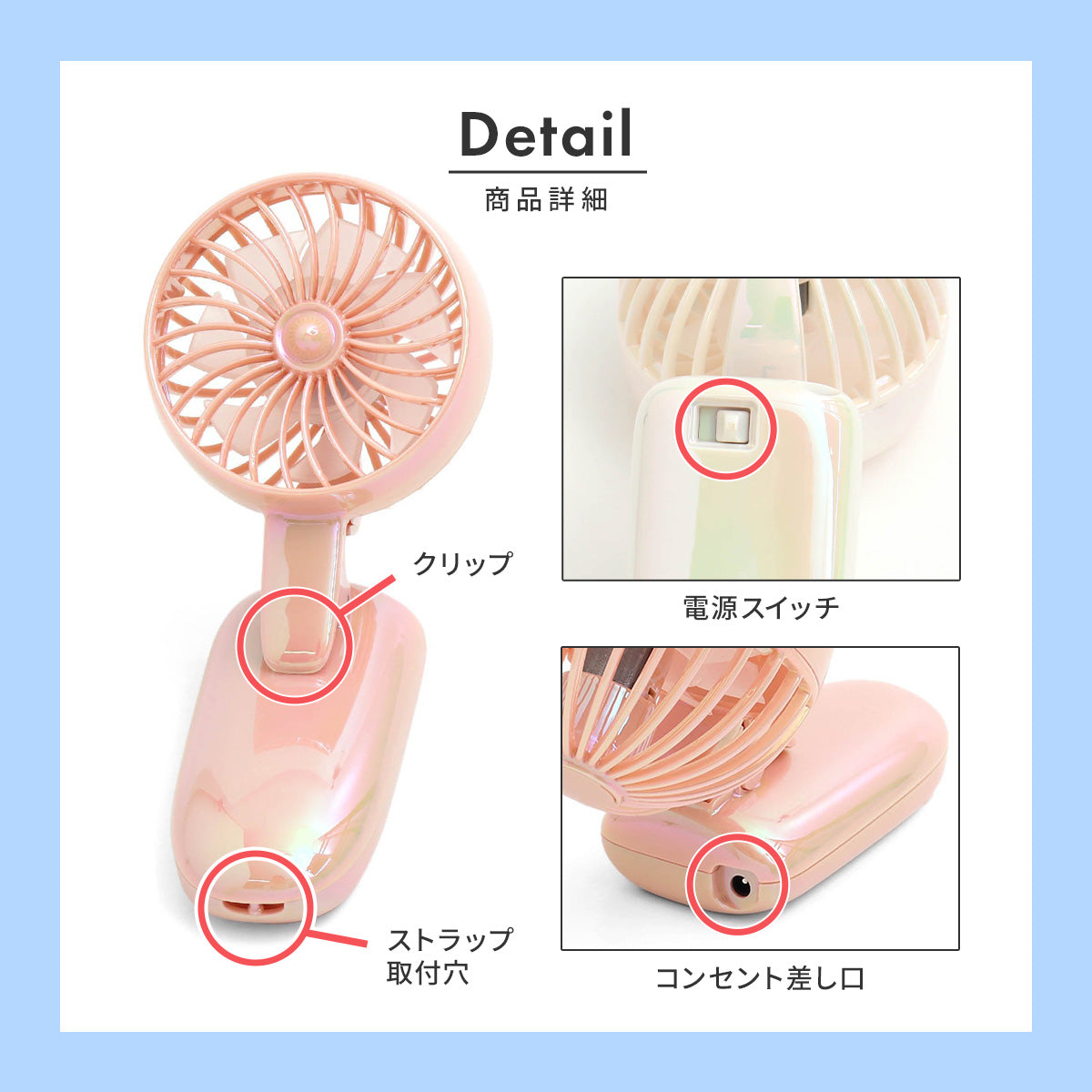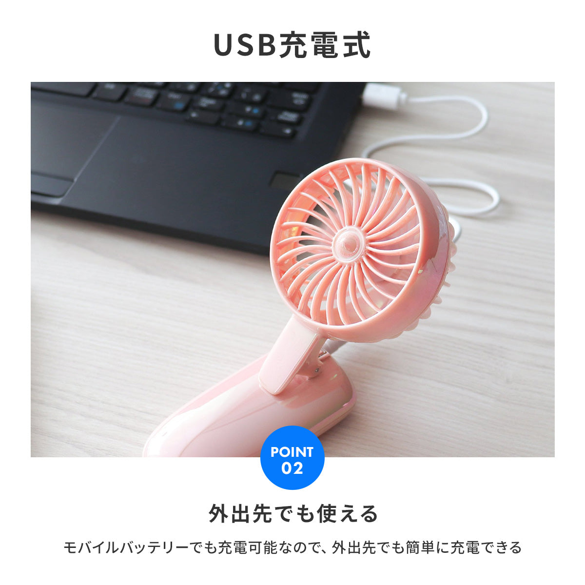 暑い屋外での活動やムシムシした雨の日でも傘に取り付けておけば、涼しく快適♪
