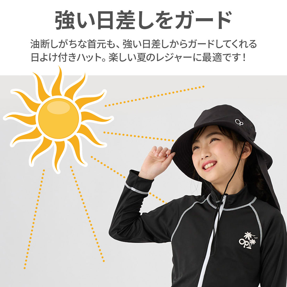 最高ランクのUVカットのマリンハットで、お子様の楽しい活動を安心して見守ることができます!