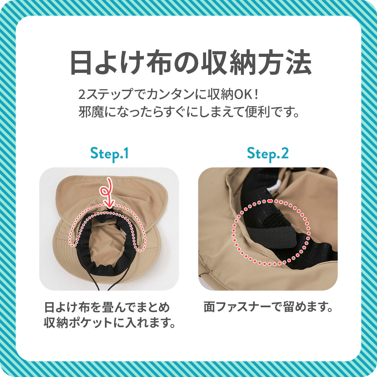 もちろん日よけは収納でき、日よけなしの普通の帽子としてもお使いいただけます!