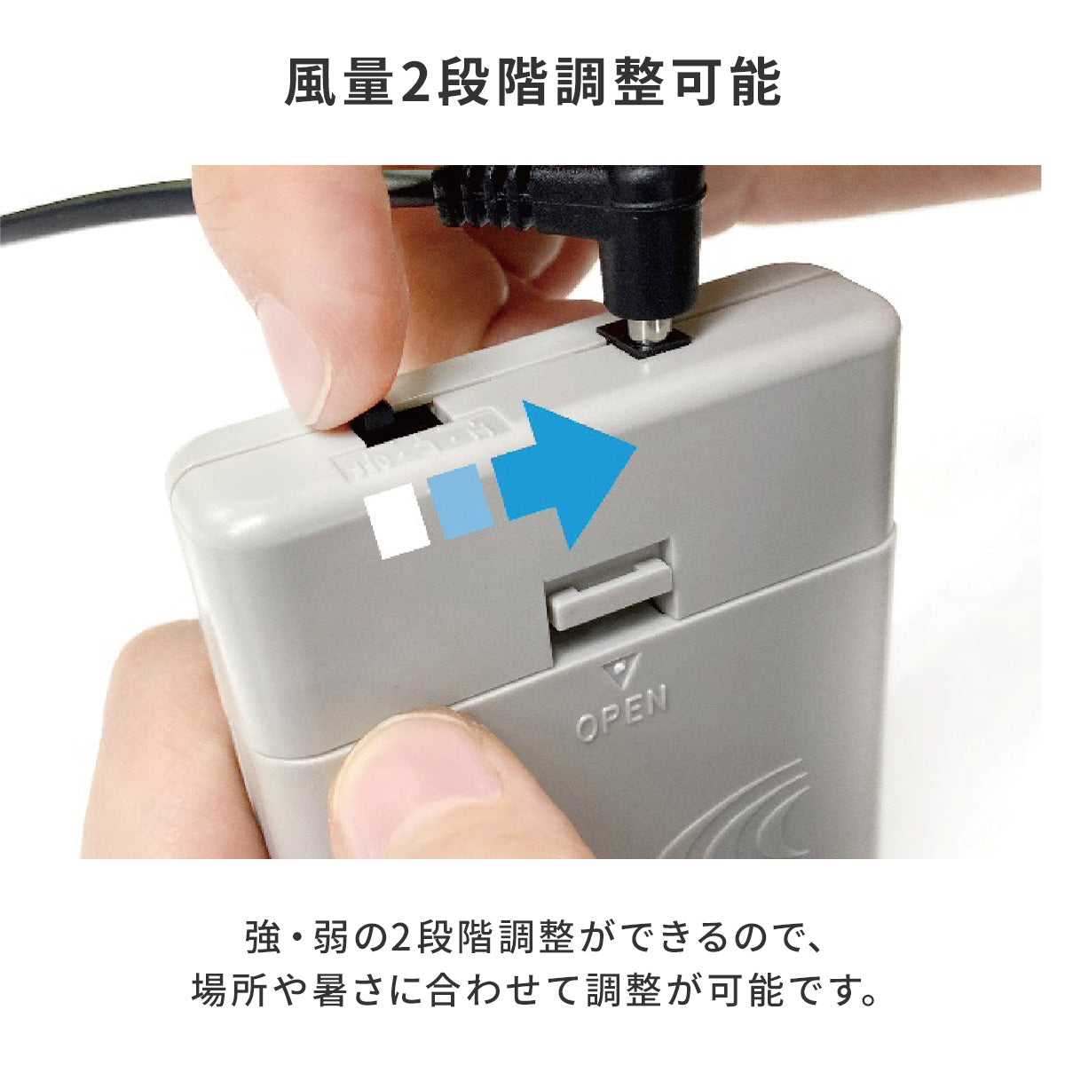ファンが付いていても約385gと軽量&使わないときはコンパクトに収納できます!