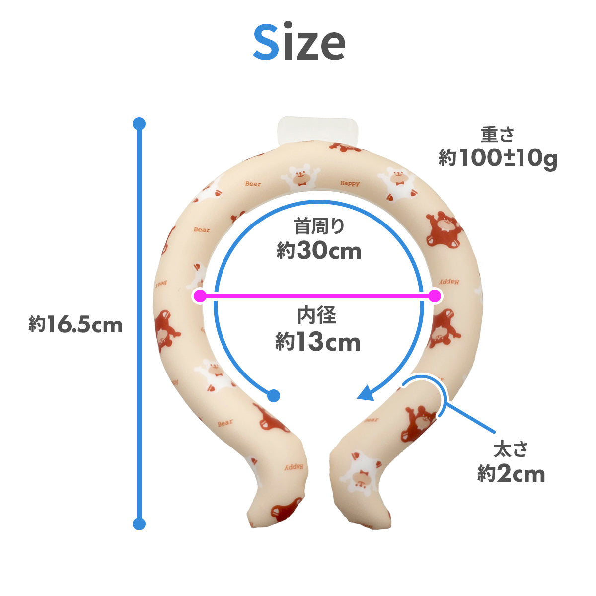 サイズ | 約13 x 16.5 x 2(cm)、首回り約30cm |
