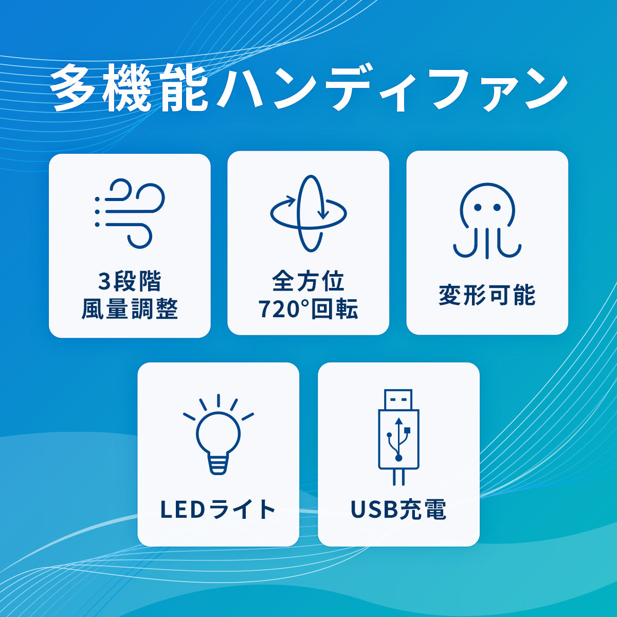 ライトも付いて、4Wayな扇風機!LEDライト付き ハンディファン☆