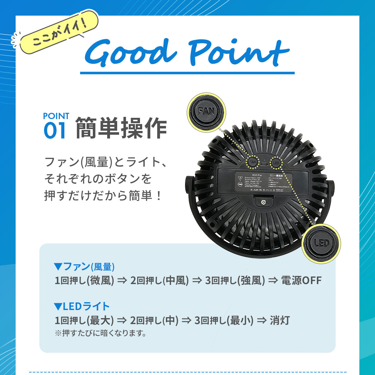 付属品 | 扇風機本体(2500mAhリチウム電池入)、USBケーブル、取扱説明書 |