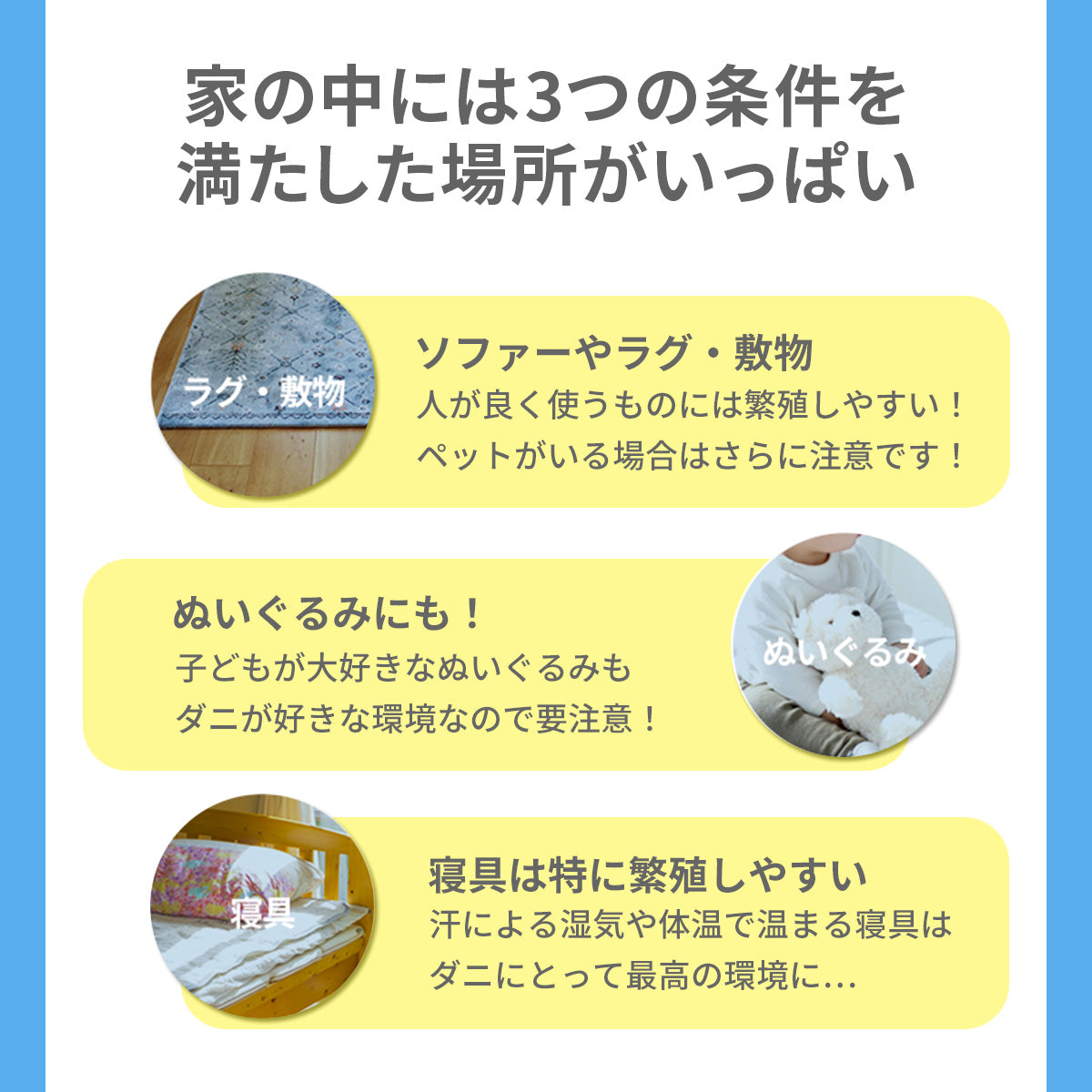家の中には、ダニが好むものがいっぱい…