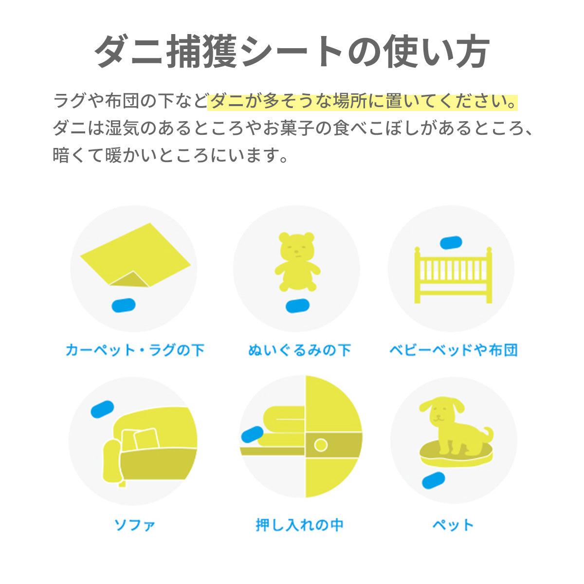 このダニシートをダニがいそうな場所に置いておくだけで、ダニから身を守ります!!
