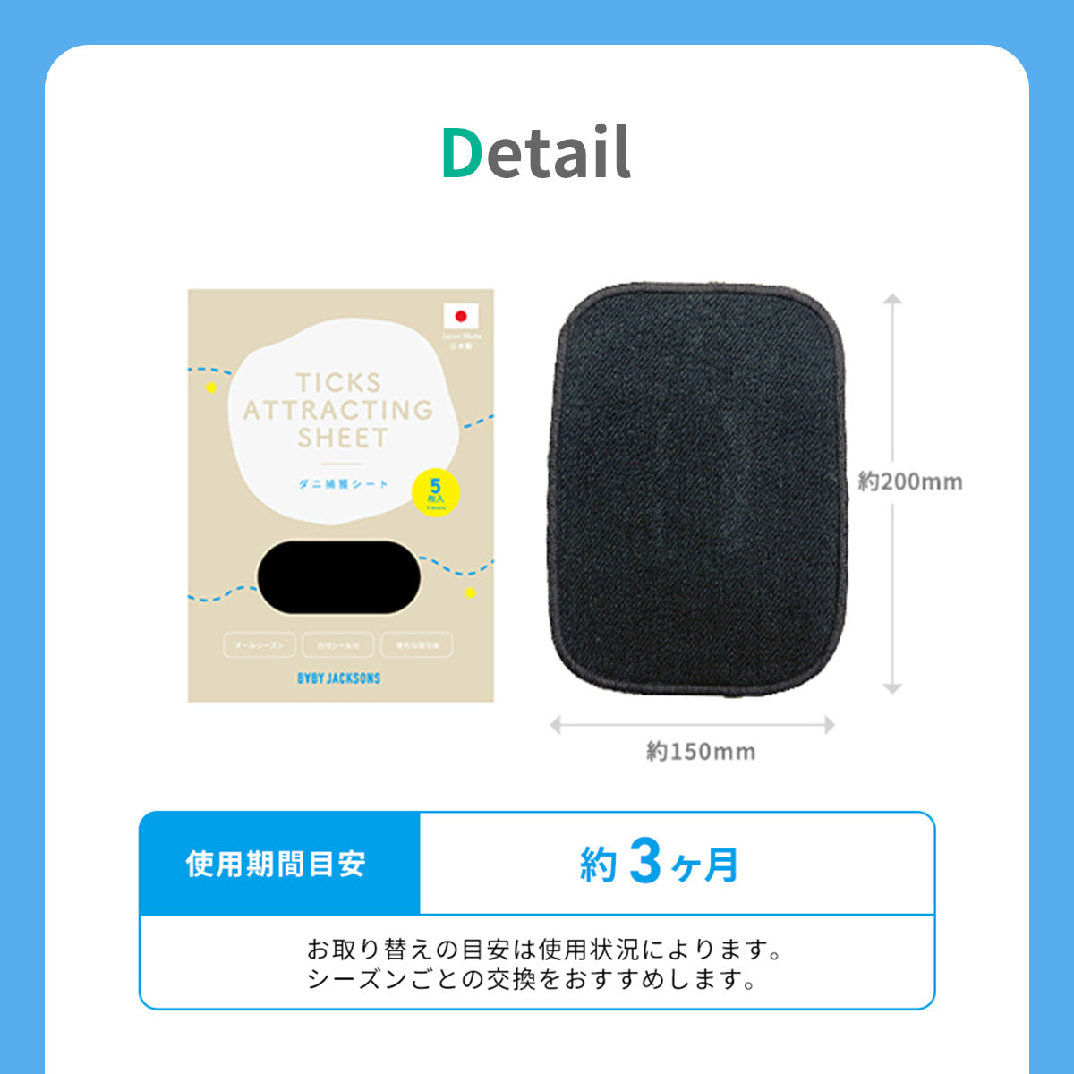 交換時期 | 約3ヶ月 お取替えの目安は使用状況によります。シーズンごとの交換をおすすめします |