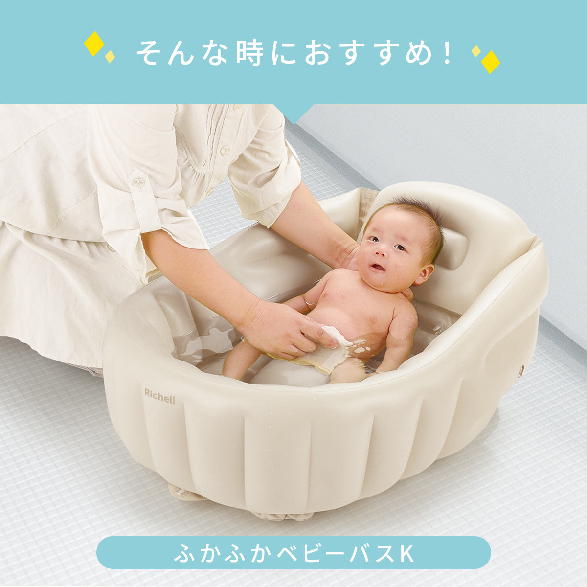 赤ちゃんもママパパも笑顔でお風呂デビュー!!リッチェル ふかふかベビーバス☆