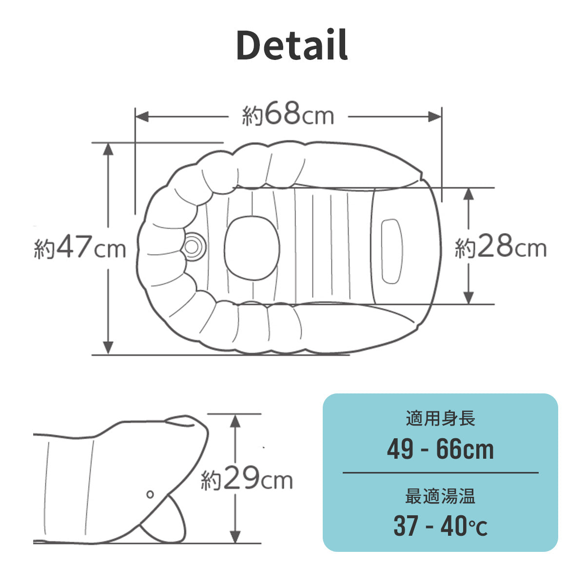 最適湯温 | 37~40℃ ※50℃以上のお湯は入れないでください |
