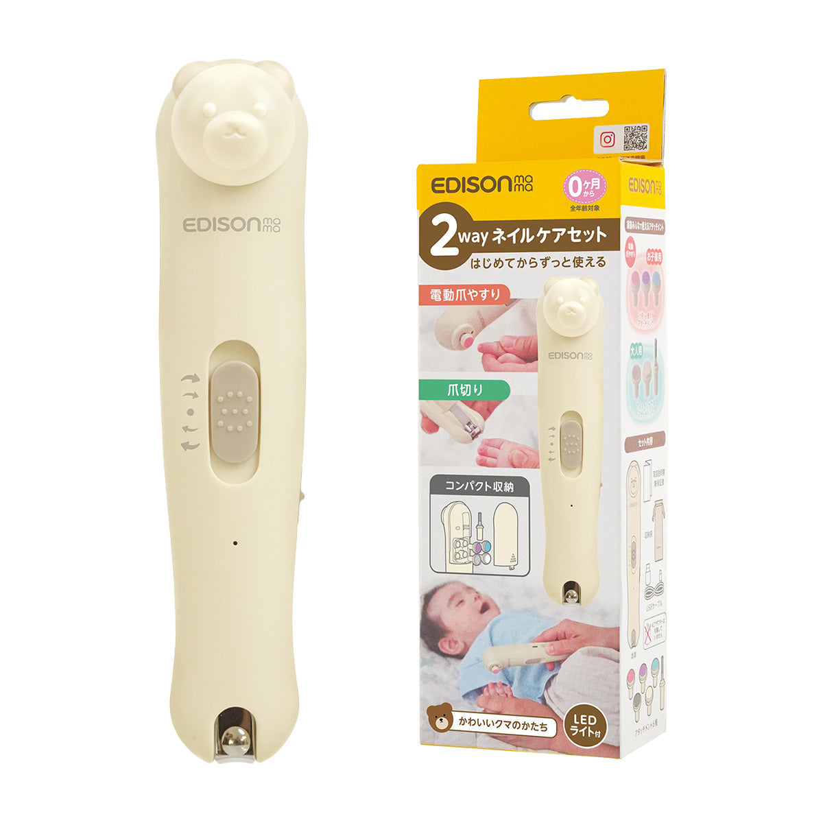 赤ちゃんの小さい爪にも使える電動爪やすりと、爪切りがセットに!