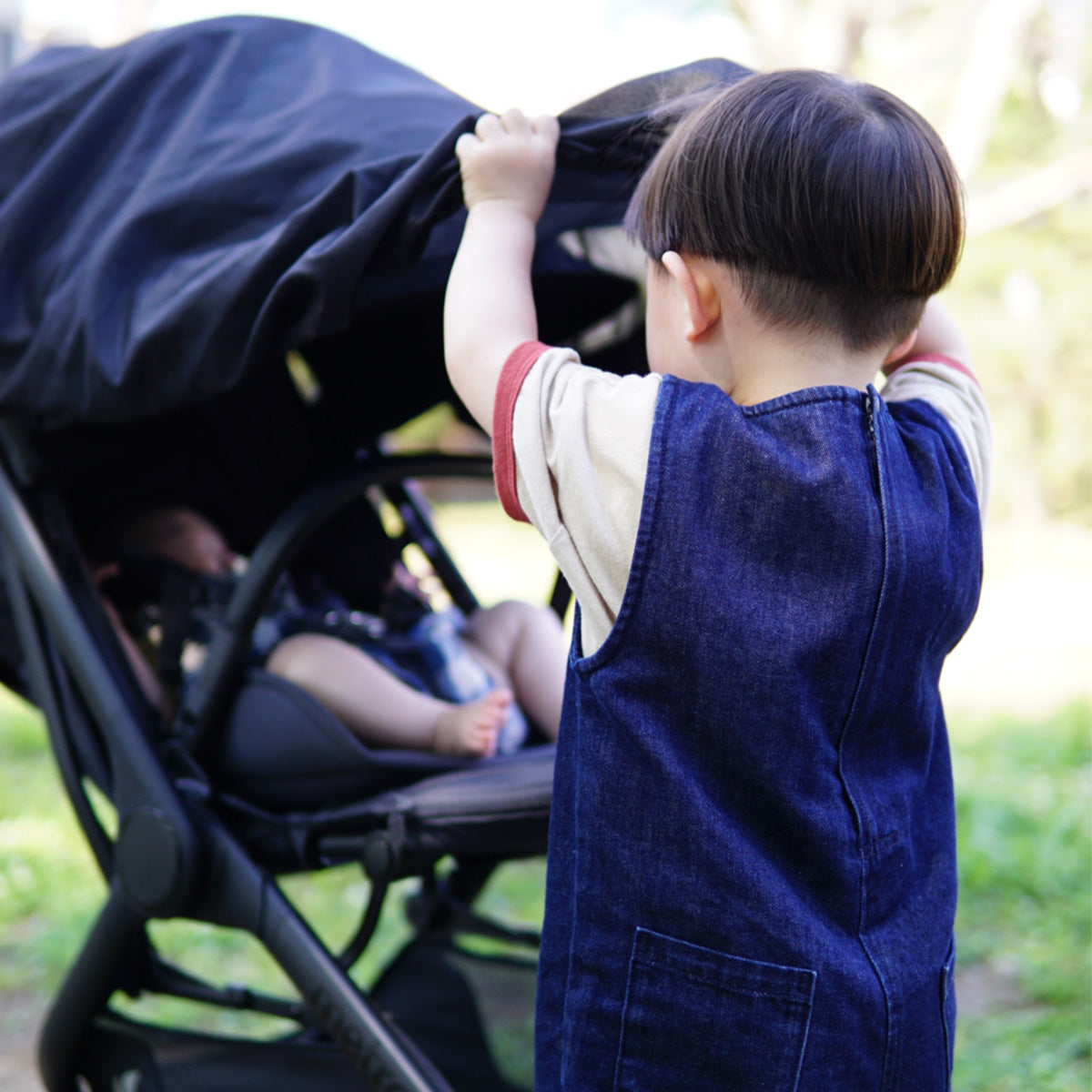 A型B型の一人乗りベビーカーに対応し、背面式・対面式どちらでも使えるのが嬉しいポイント。