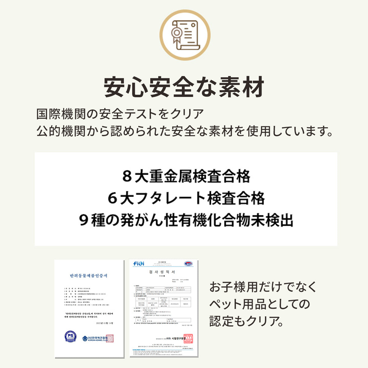 ・有害物質未検出。厳しい国際基準の安全検査に合格した、環境に優しく人体に無害な非フタル酸(ノンフタル酸)系PVCです。