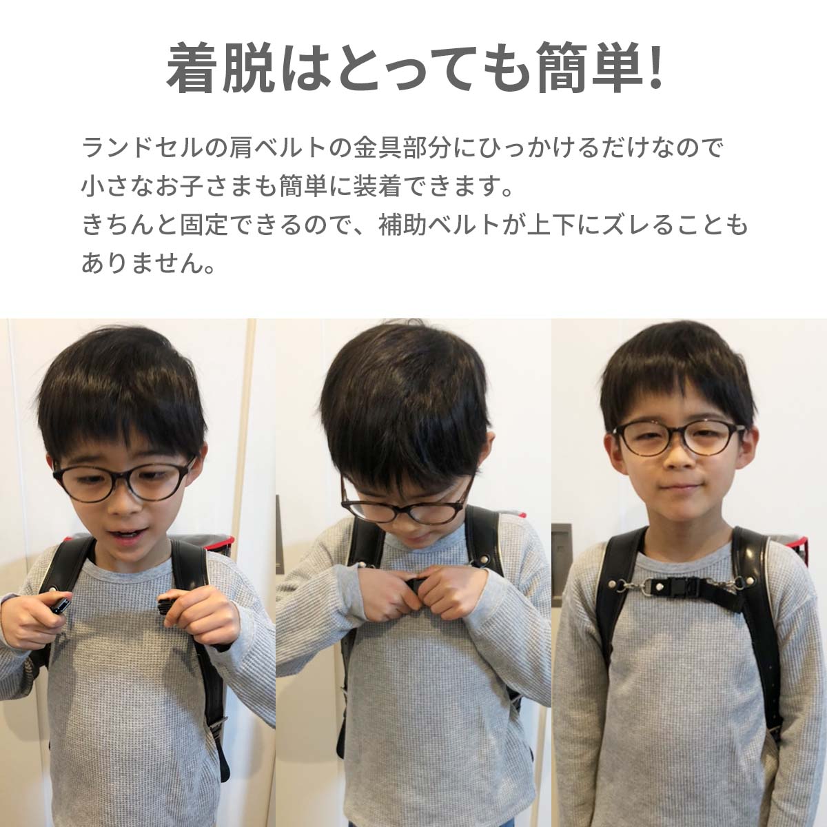 ランドセルの肩ベルトがずれないように左右をしっかりホールドできるので、背中とランドセルの隙間がなくなり重心が中央にくることで【体をしっかり固定】【正しい姿勢で歩行】【転倒防止】などの効果が得られます♪♪