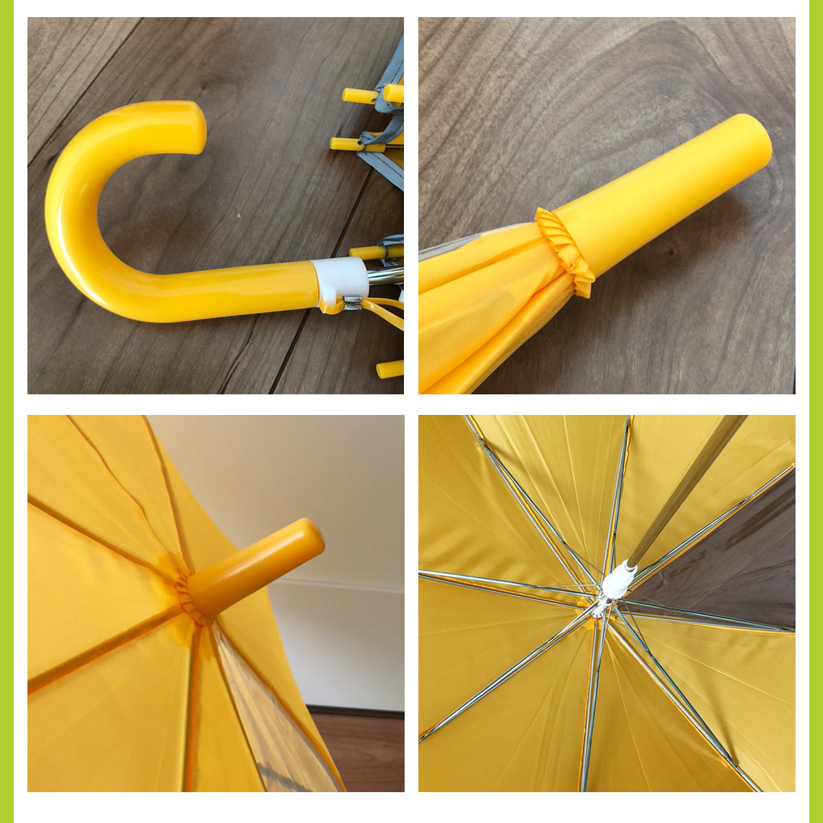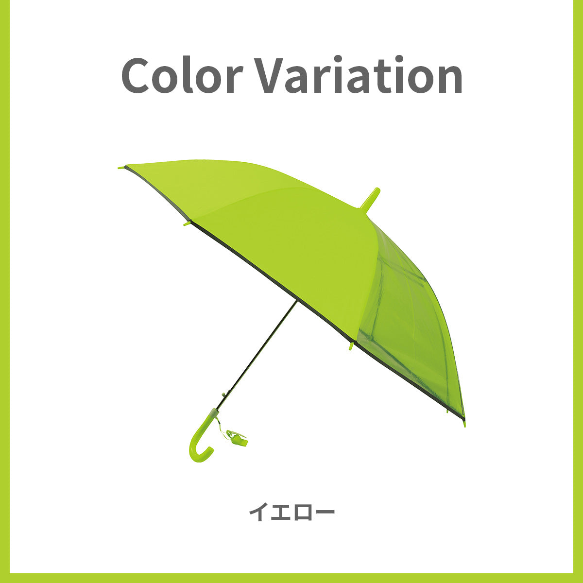 素材 | 【ホイッスル付き】 傘の生地:ポリエステル 親骨:スチール 【窓2面タイプ】 本体:ポリエステル 透明部分:POE 親骨+受骨:グラスファイバー 中棒:スチール バンドル+石突き+露先:PP |