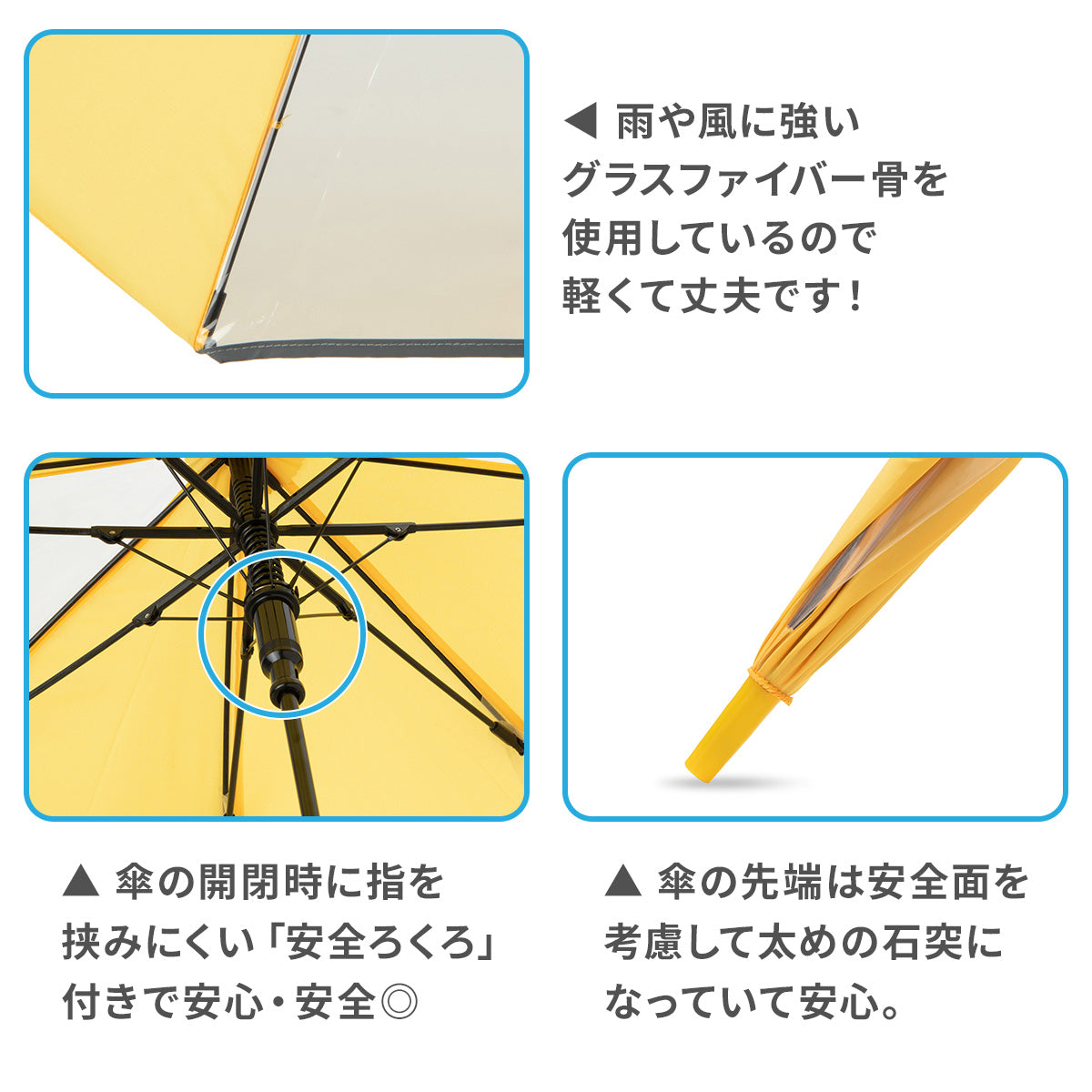 ランドセルやリュックなどが濡れないように…と深く傘をかぶっても、透明窓があるので視界も良好!!