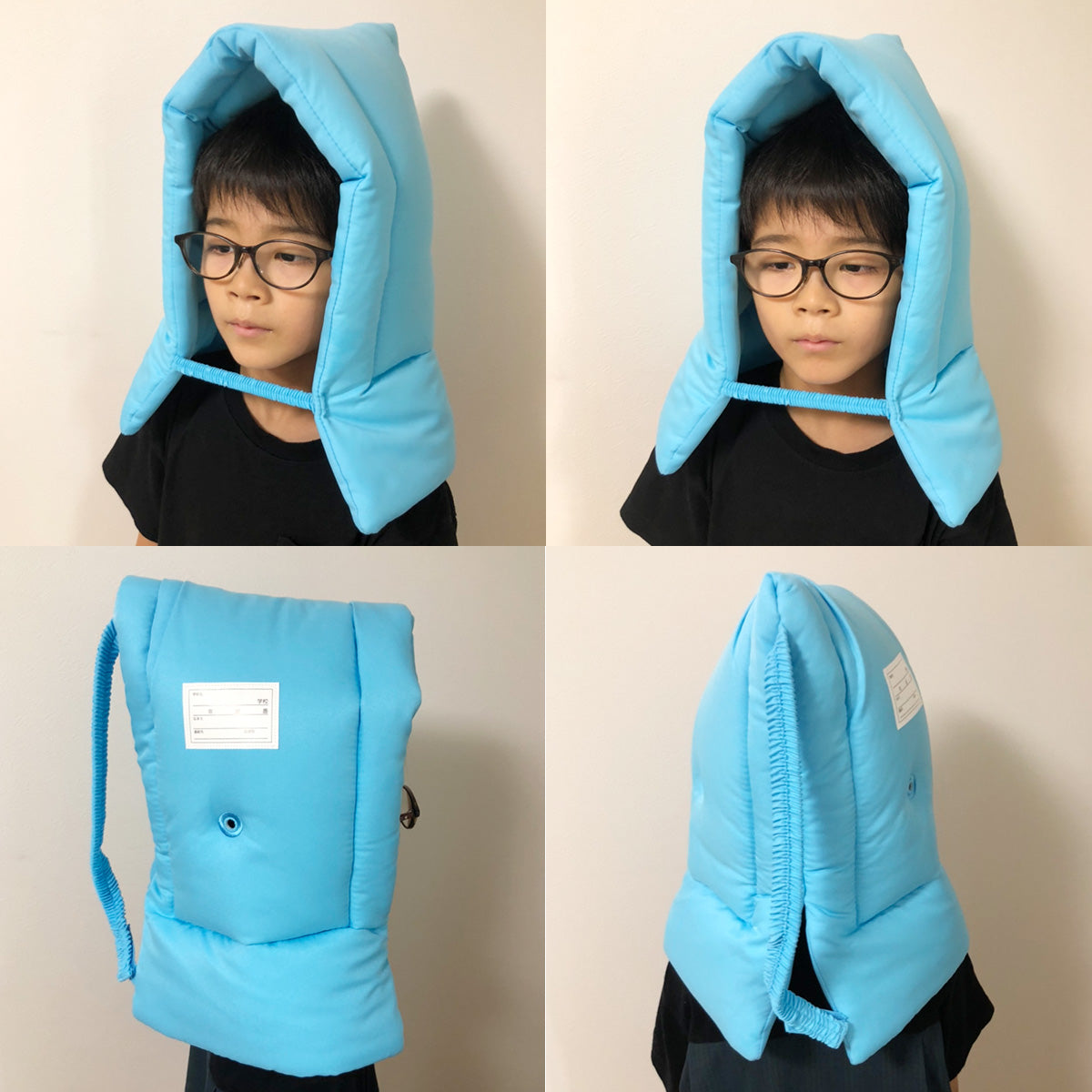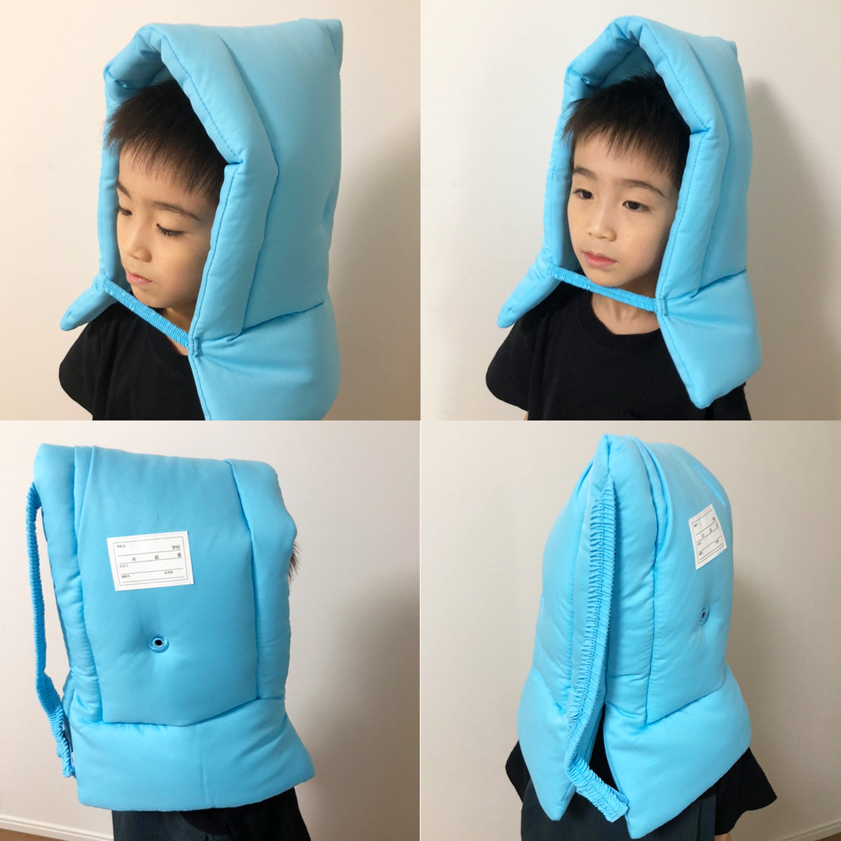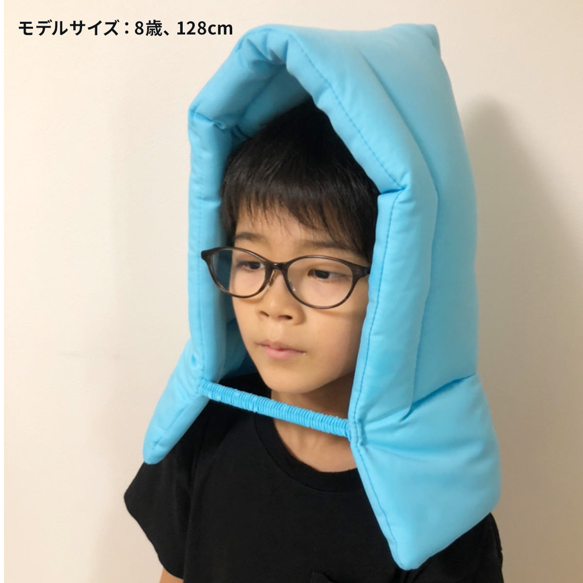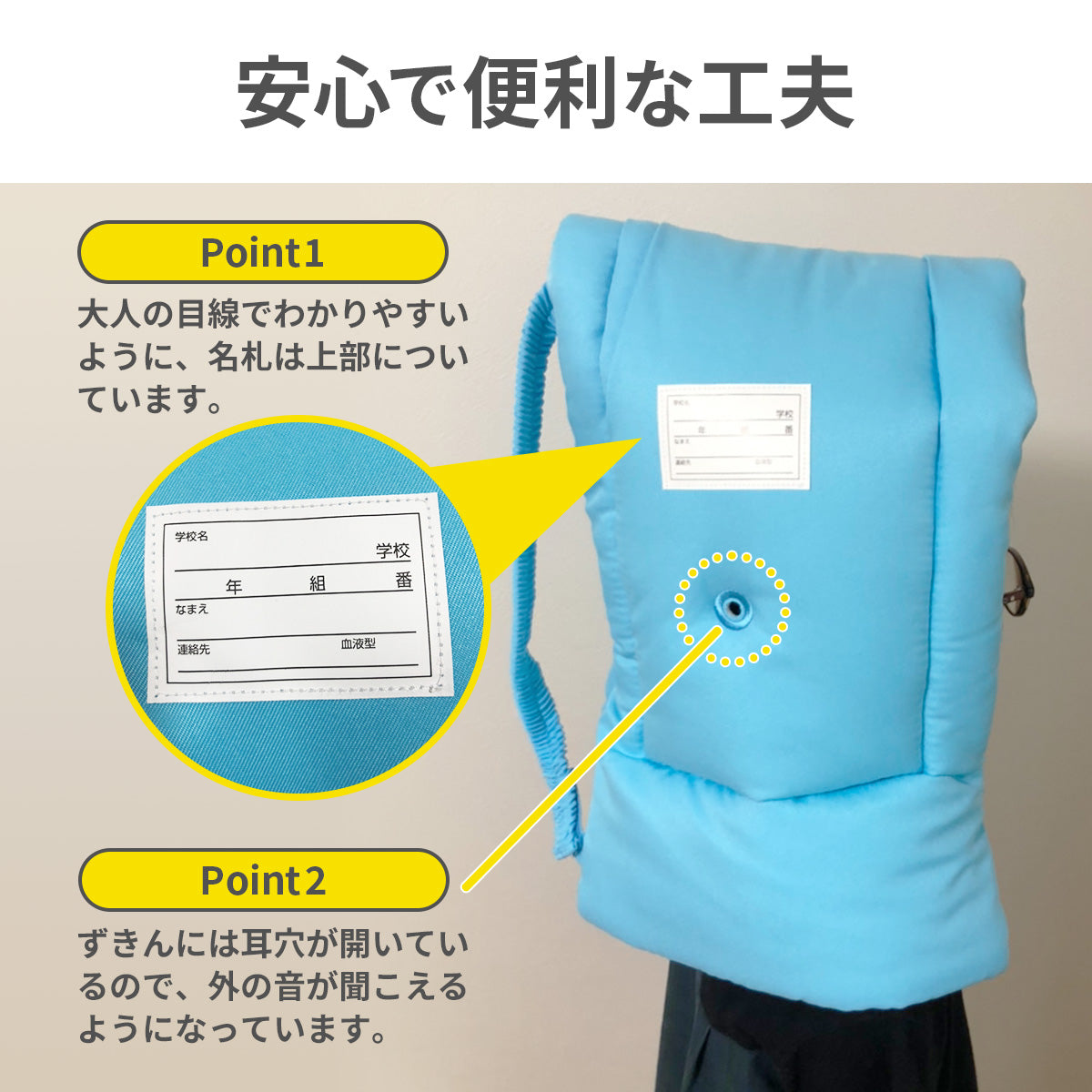 中綿たっぷりで衝撃に強く、難燃加工繊維を使用しているので、お子様の頭をしっかりと守ります!
