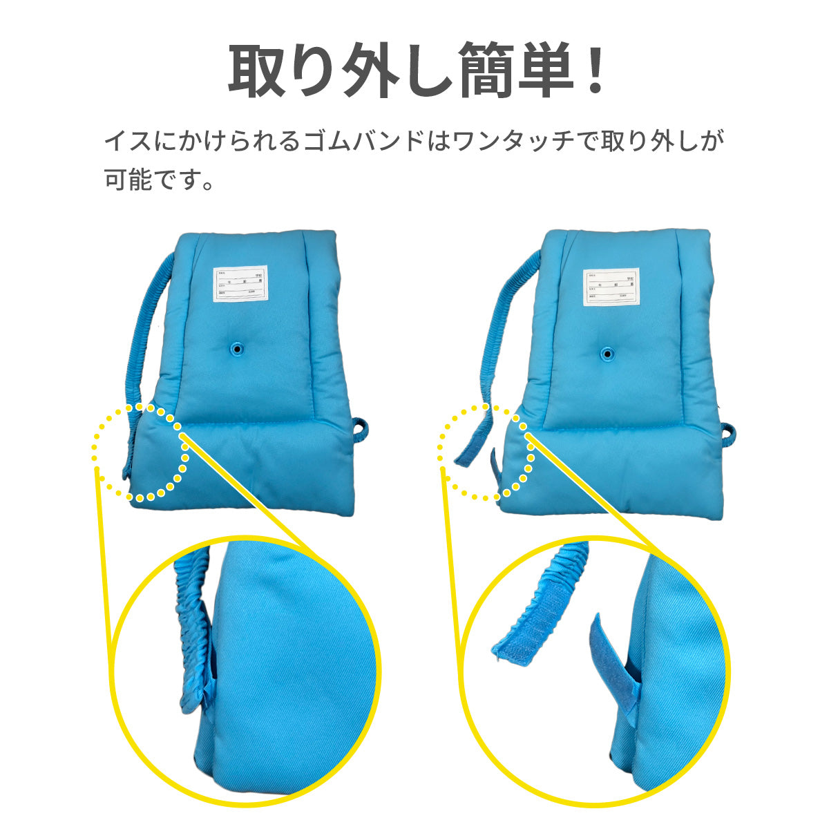 ゴムバンドは取り外しが簡単で、そのままイスにかけることができて便利!!