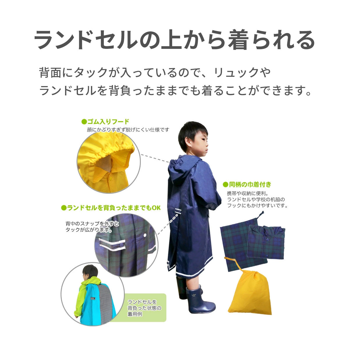 背中のスナップを外すと、ランドセルや習い事のリュックを背負ったままでも着られます!