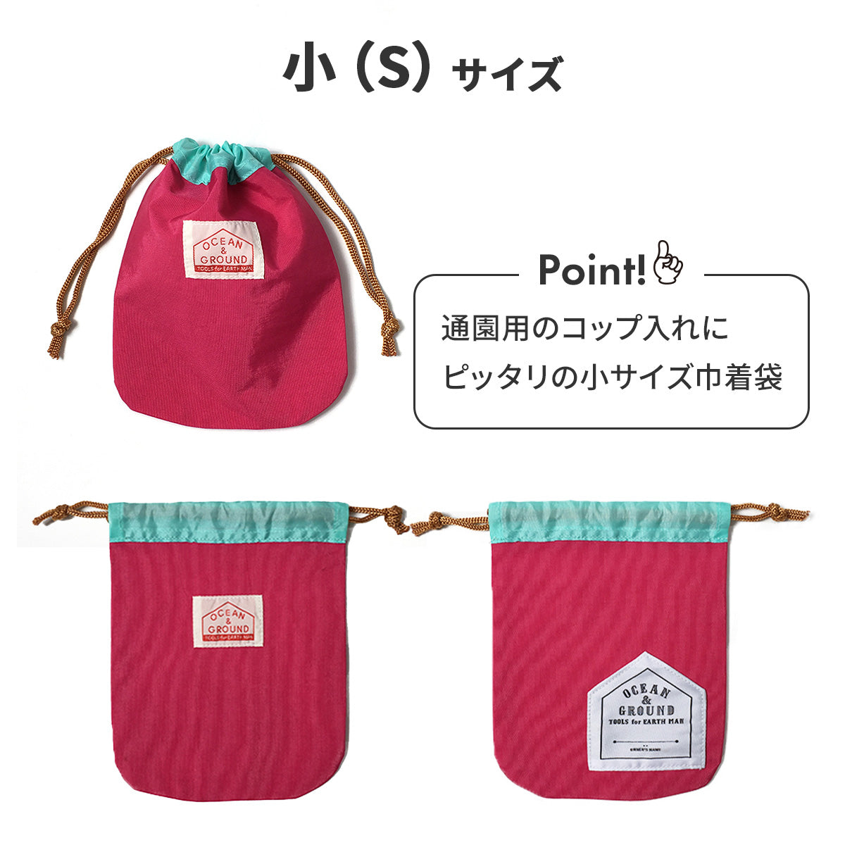 大、中、小の3サイズが揃っているので、体操服や給食袋、小物入れとしても活躍し、男の子も女の子も喜ぶかわいいデザインで入園や入学準備にぴったり!