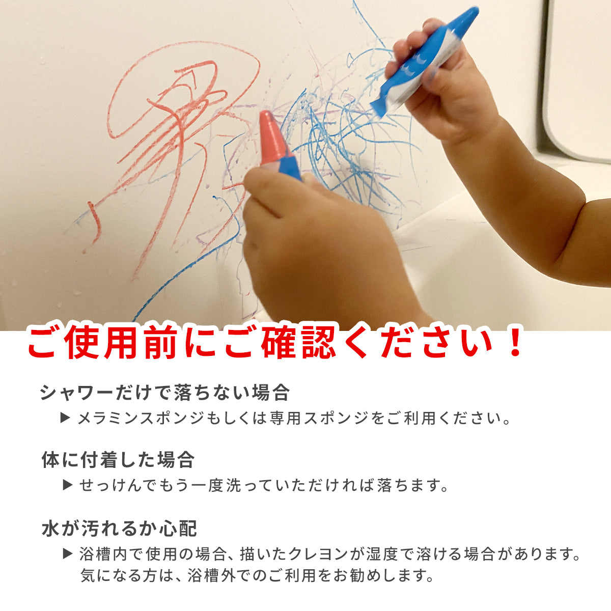A. 浴槽内でご使用の場合、クレヨンが湿度で溶ける場合がございます。気になる場合は、浴槽外(洗い場)でご使用ください。